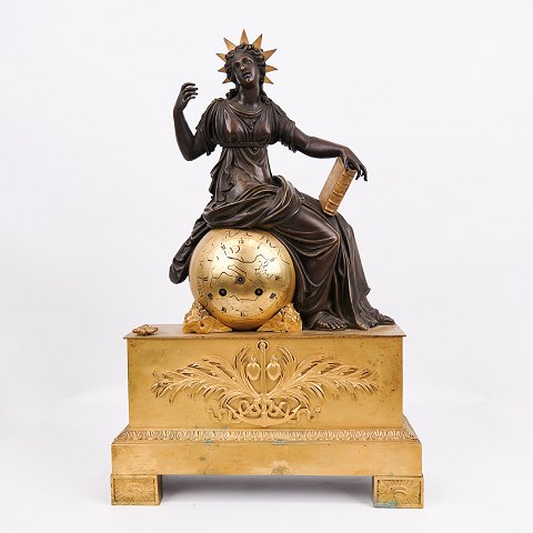French Mantel Clock - Bronze - Decorated With Female Figure with Radiant Crown and Book - Paris - Year 1820s