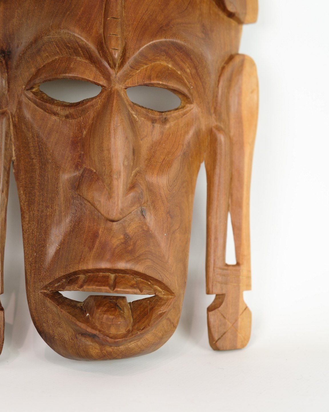 African mask, hand-carved in light wood, typical of traditional ceremonies and rituals in West and Central Africa. The mask often represents spirits or ancestors and is an authentic example of African craftsmanship.