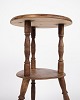 Antique pine side/flower table from the 1880s. Two-tier with turned legs.