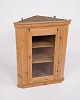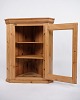 Antique hanging corner cabinet in pine with glass door. From the 1890s.