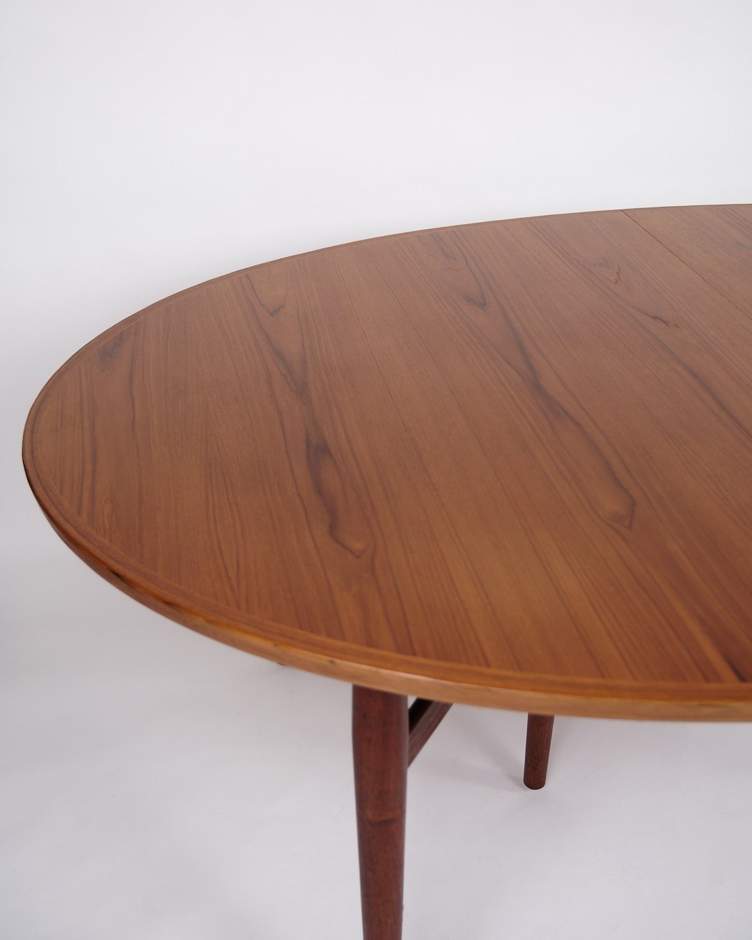 Please contact us for price informationLarge oval dining table designed by Arne Vodder and produced by Sibast Møbelfabrik in the 1960s. The table is made of teak and 2 extension leaves of 50cm are included with the table.