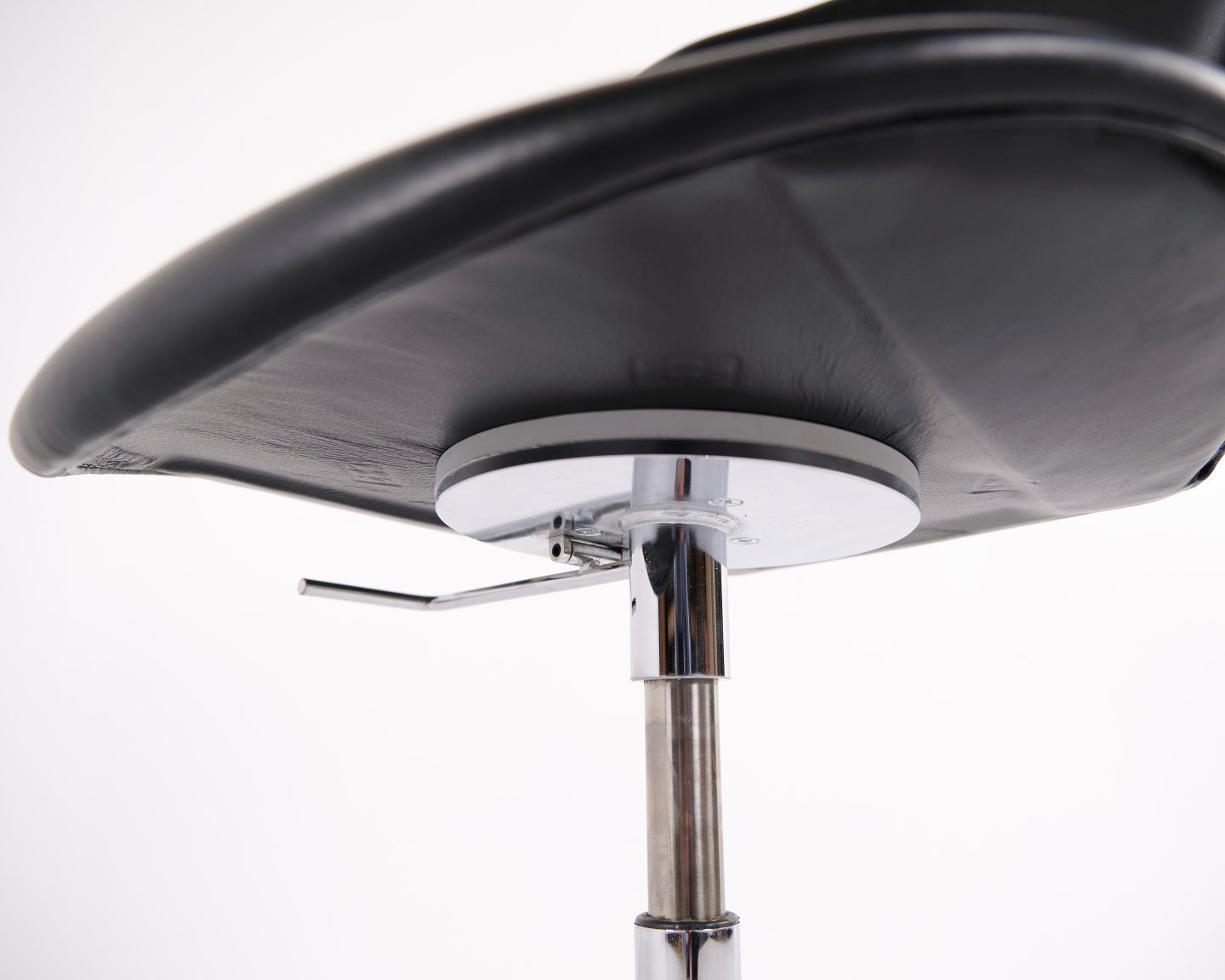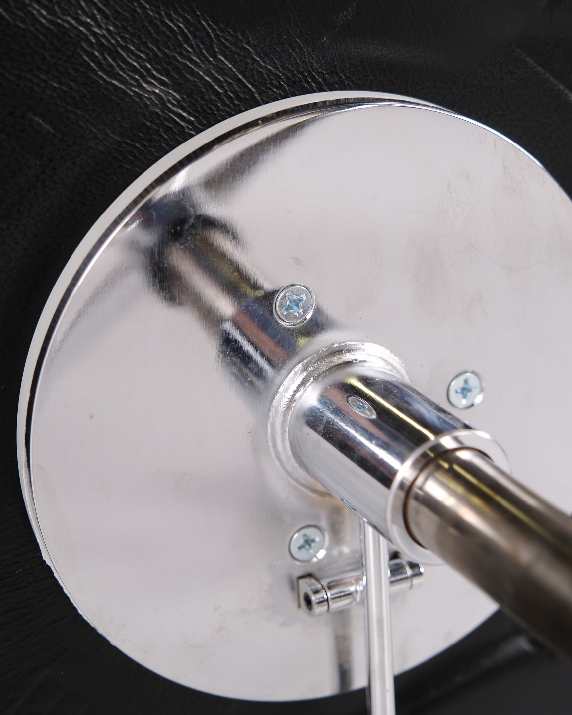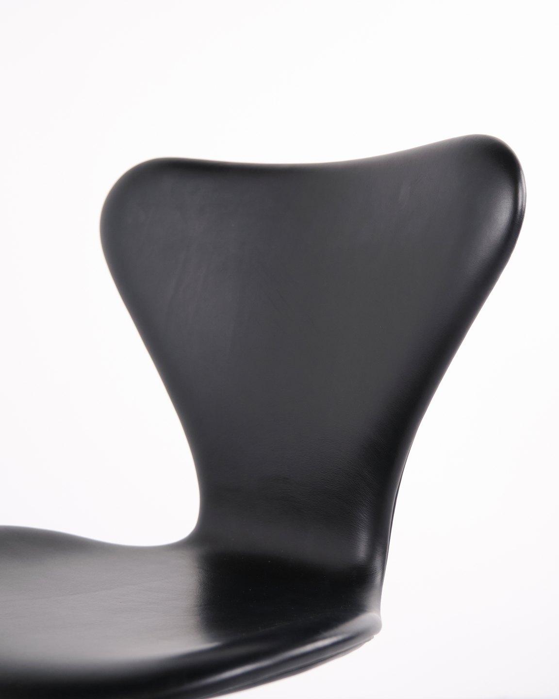 Arne Jacobsen Syver office chair, model 3117, for Fritz Hansen. In black leather and chrome frame with wheels. Classic Danish design.