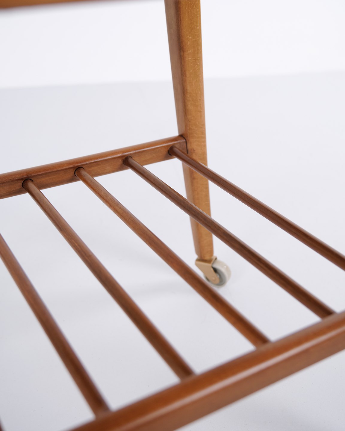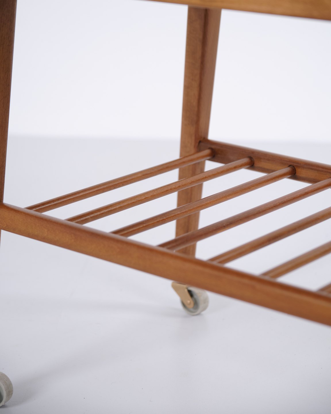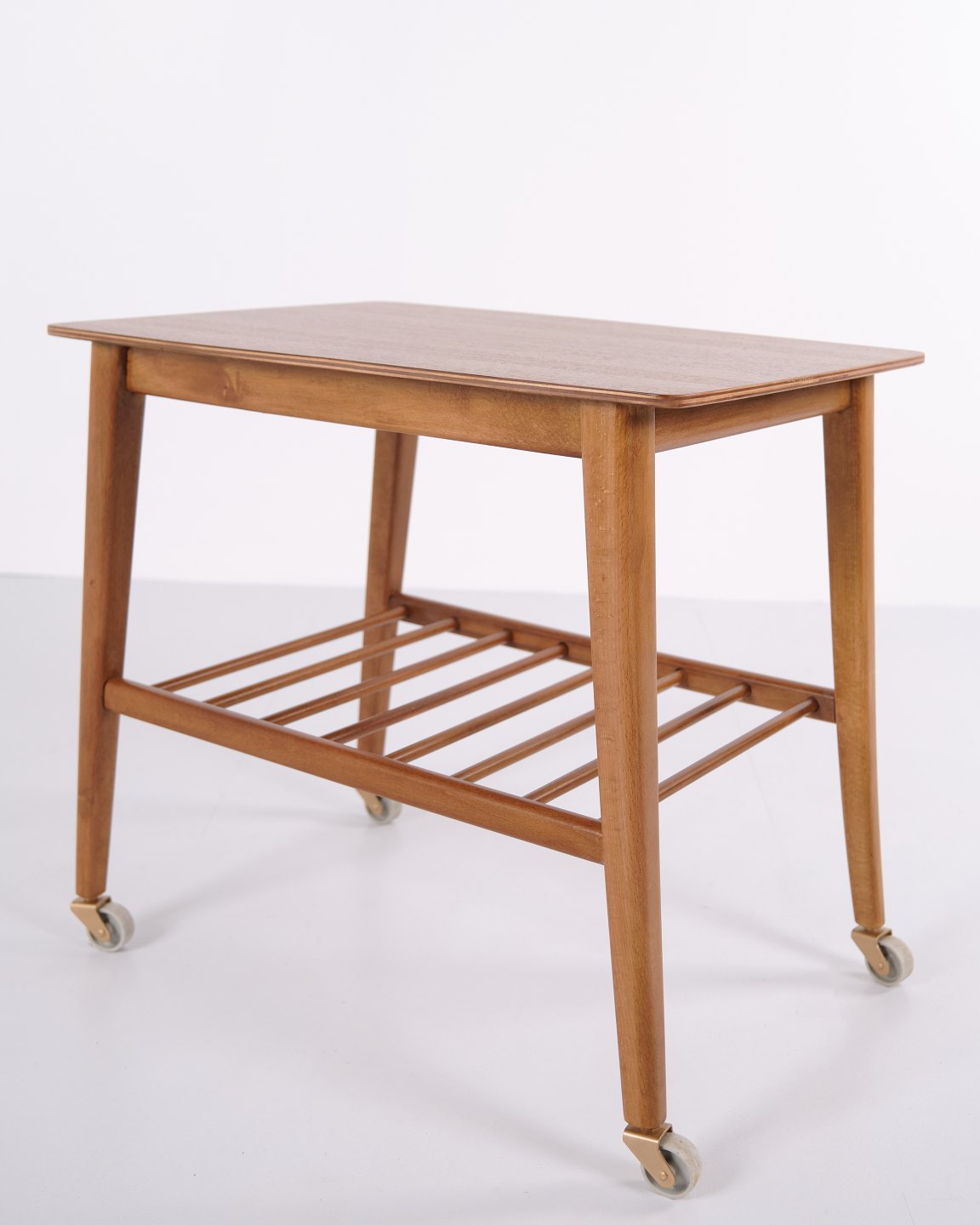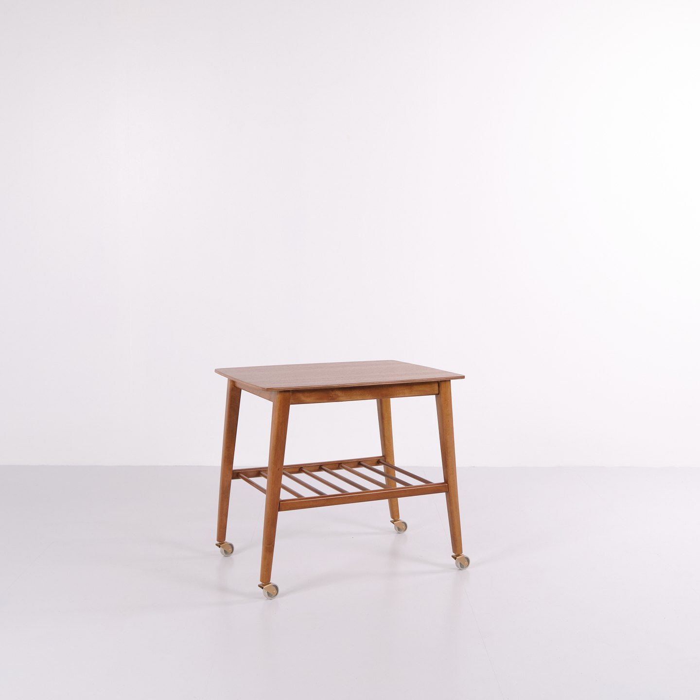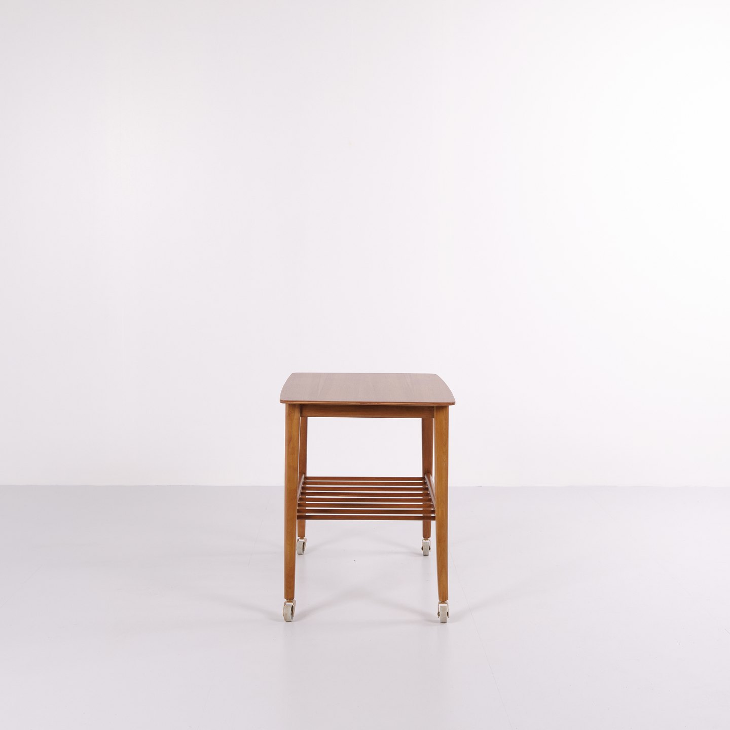 Side table from the 1960s in teak with shelf and wheels. Classic Danish design.