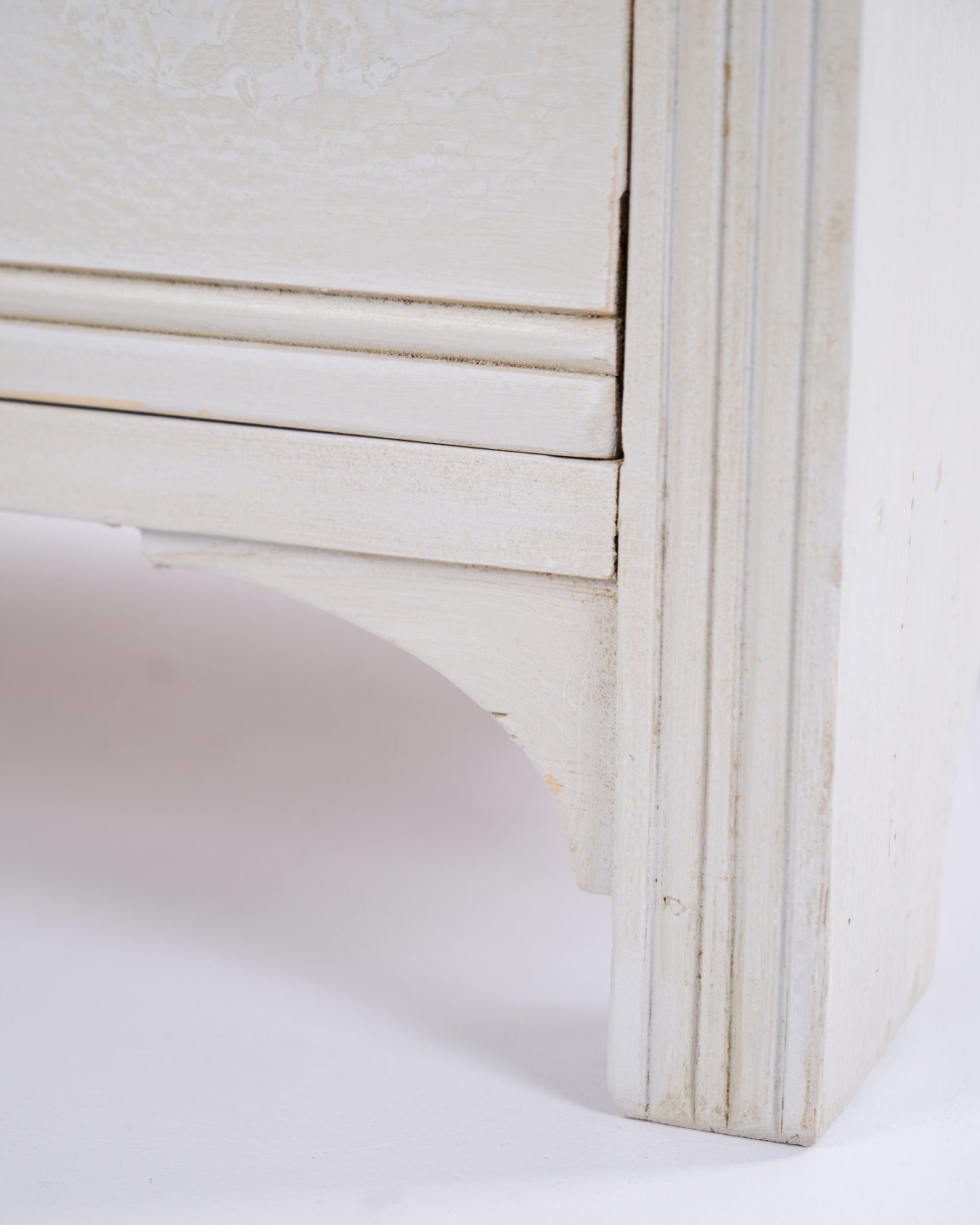 Antique chest of drawers from the 1890s with four drawers. Grey painted wood and classic design language with attractive patina.