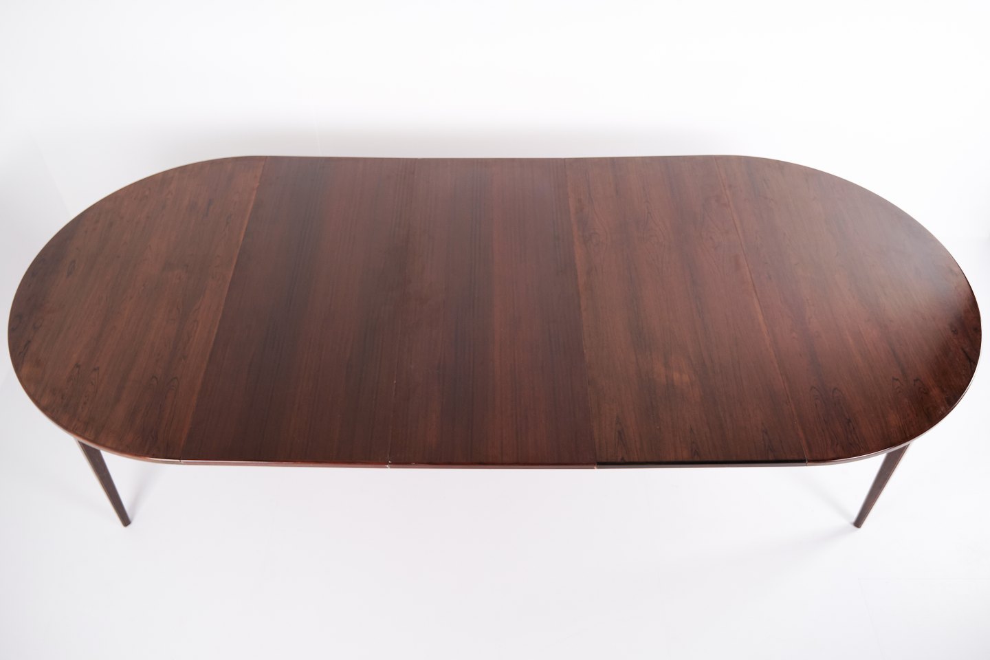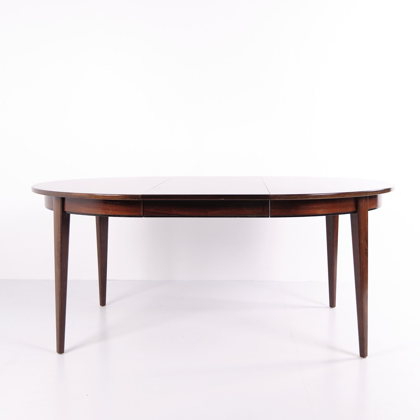 Round dining table model 55 in rosewood, designed by Gunni Omann for Omann Jun Møbelfabrik. With 3 extension leaves. Danish design from the 1960s.