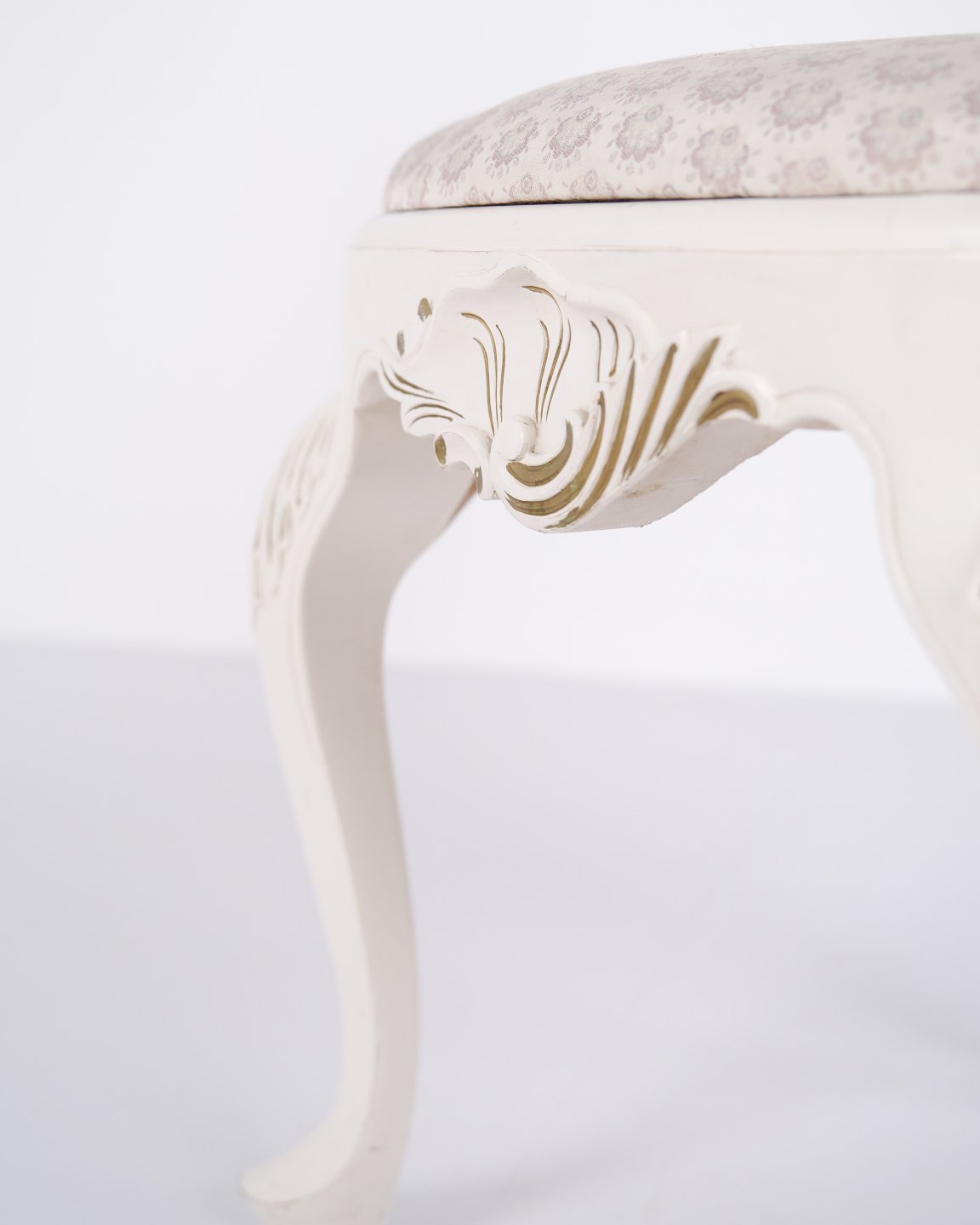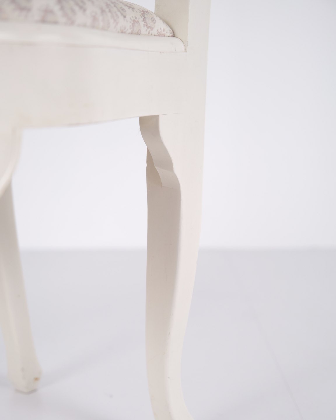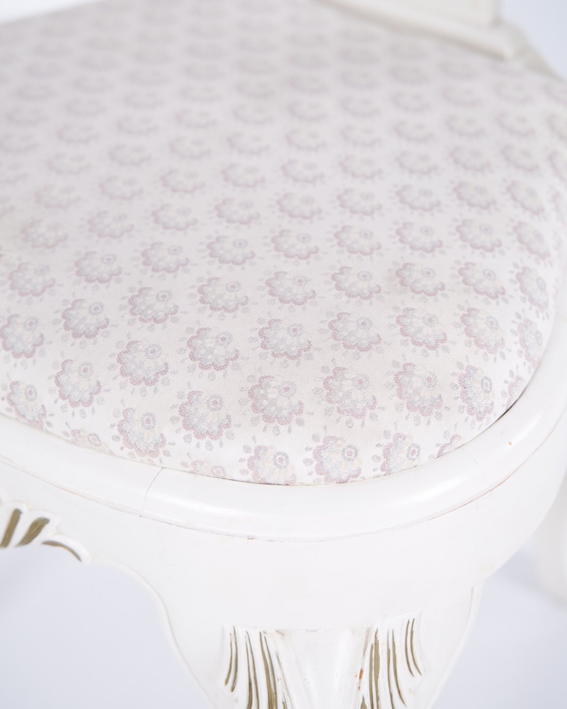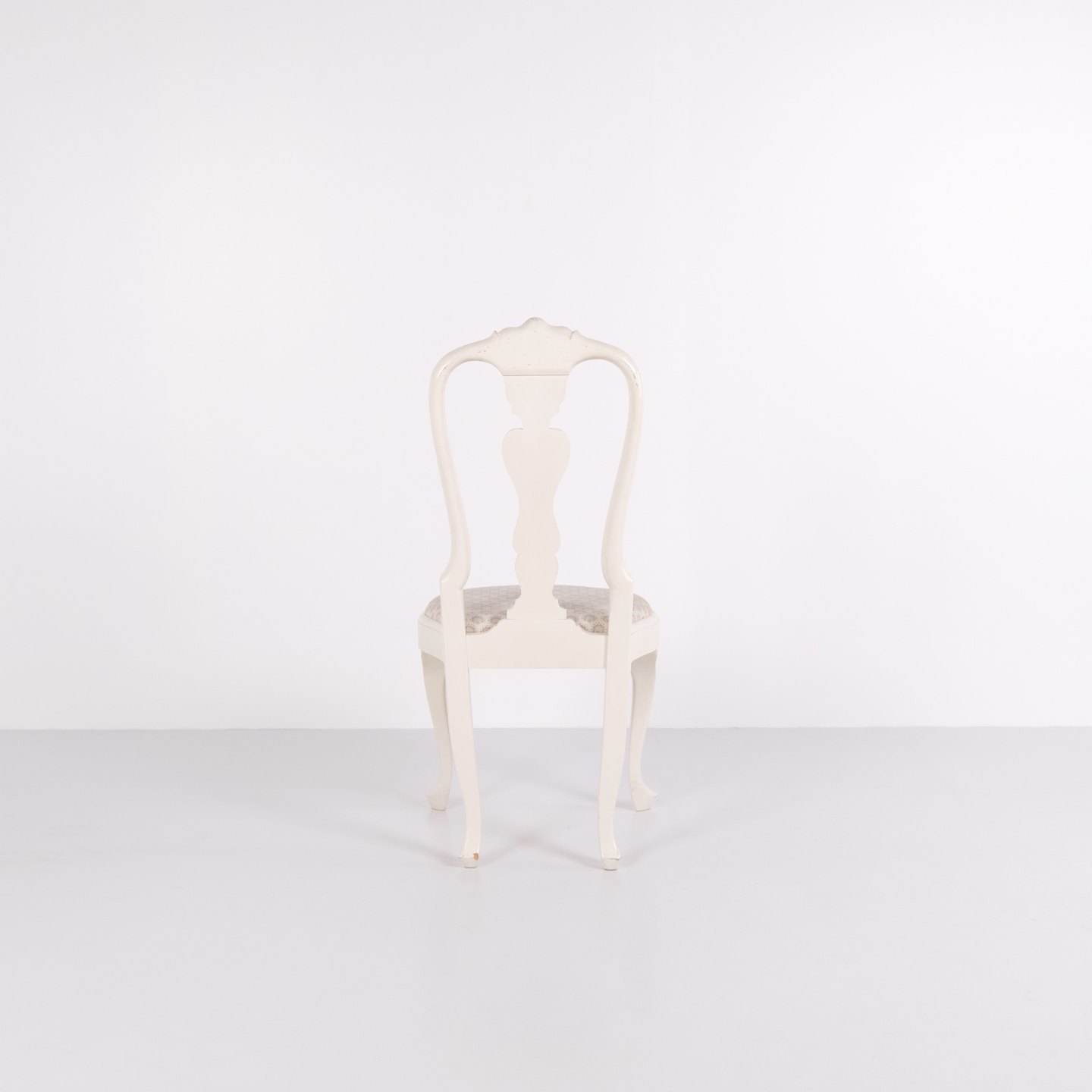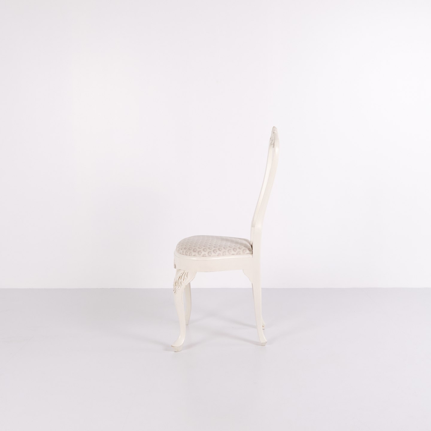 Antique dining chairs in neo rococo style from the 1920s. Set of 6 white painted chairs with decorative details.