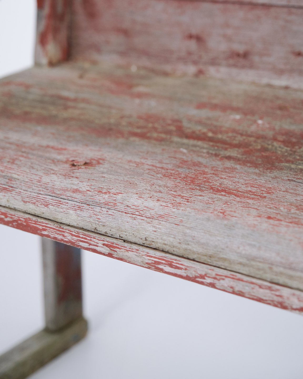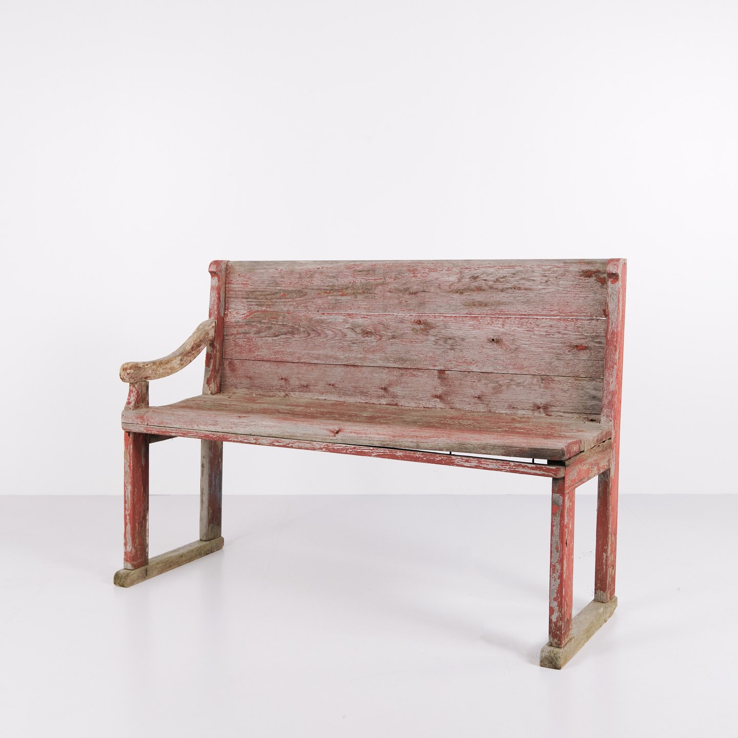 Antique bench from the 1860s in original red-painted pine wood. Antique red-painted bench from the 19th century.