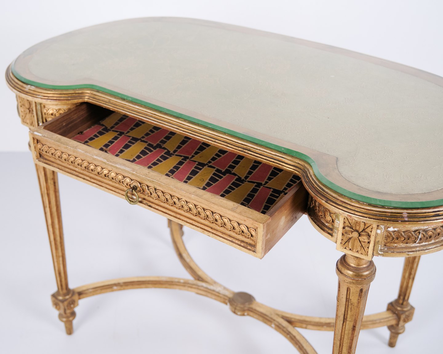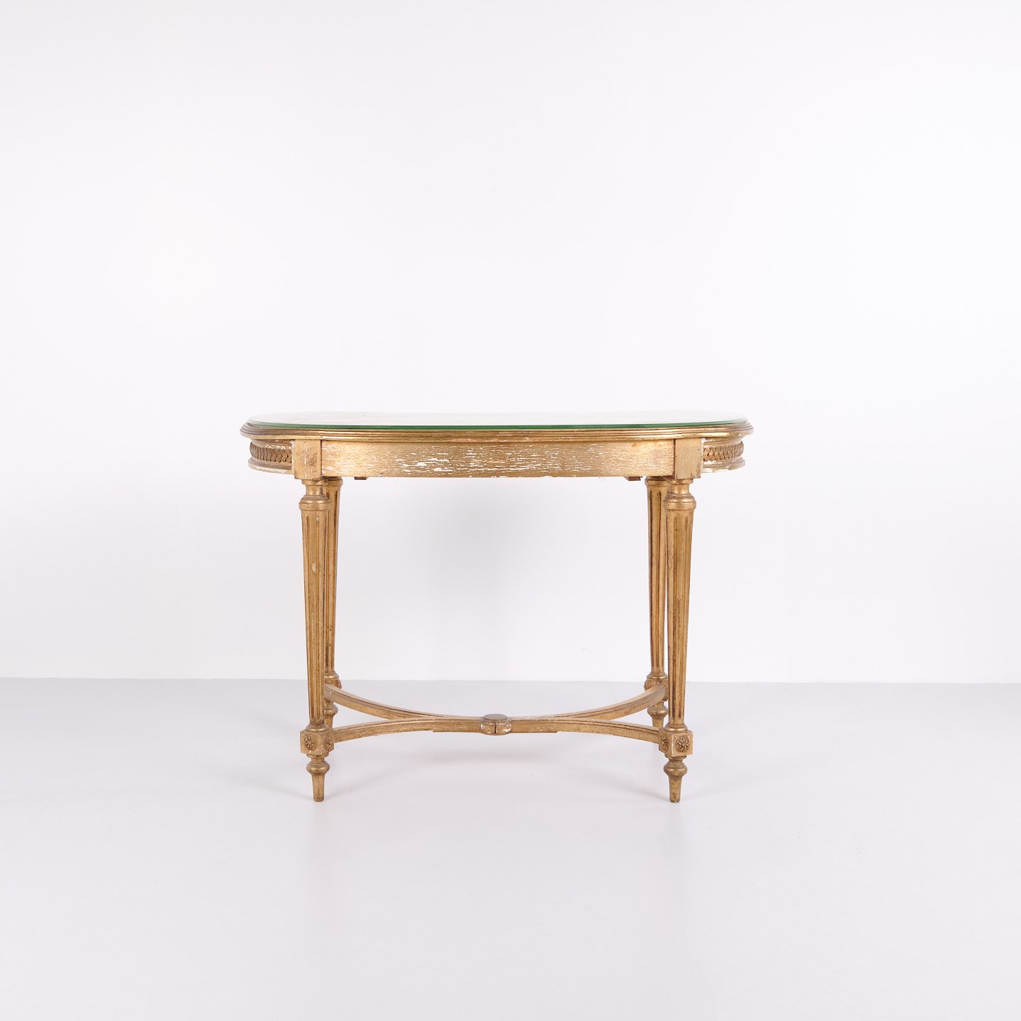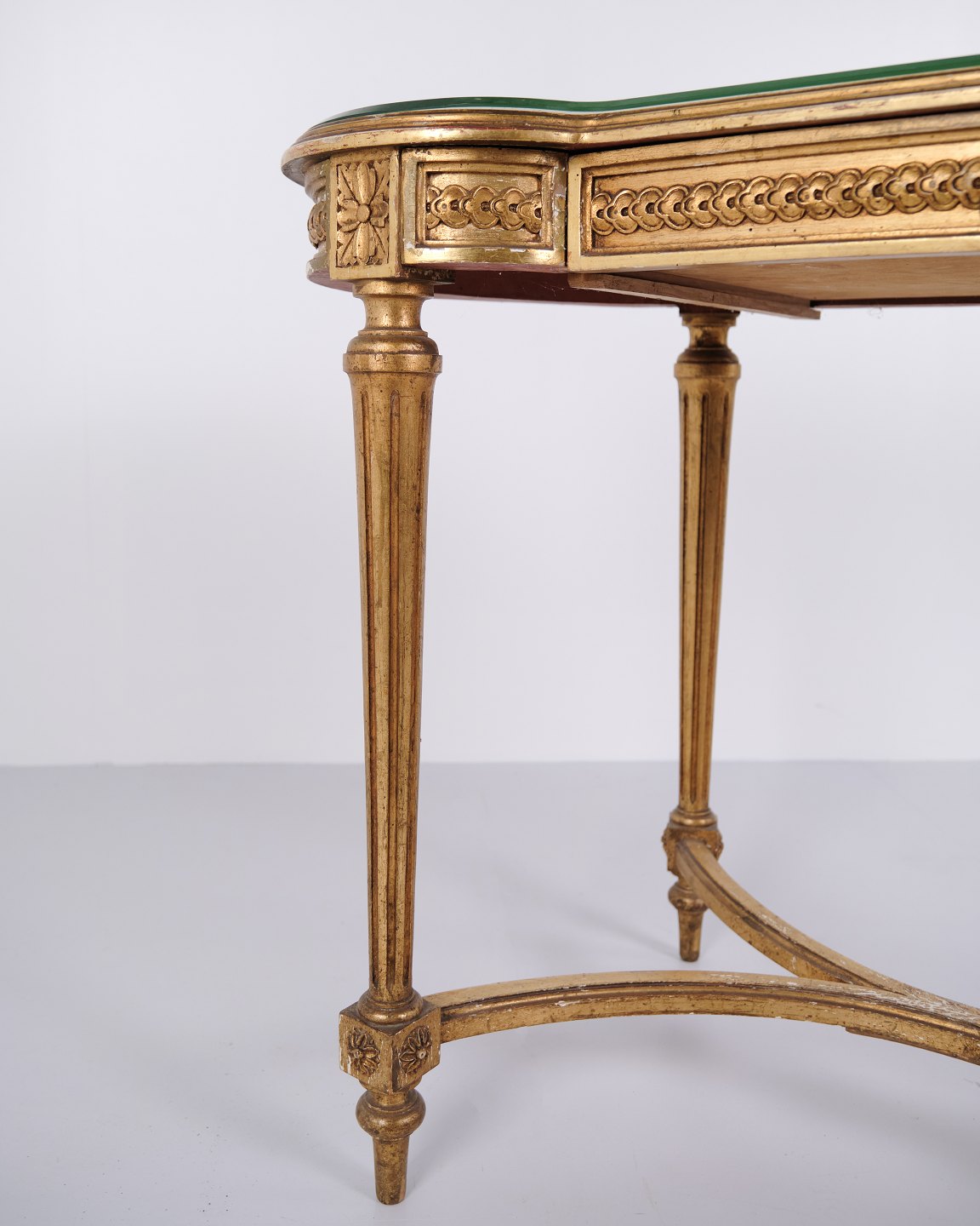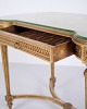 Please contact us for price informationAntique desk from the 1850s in Gustavian/Louis XVI style, gilded wood, glass top and drawer.