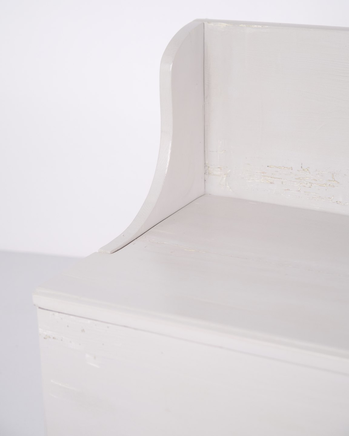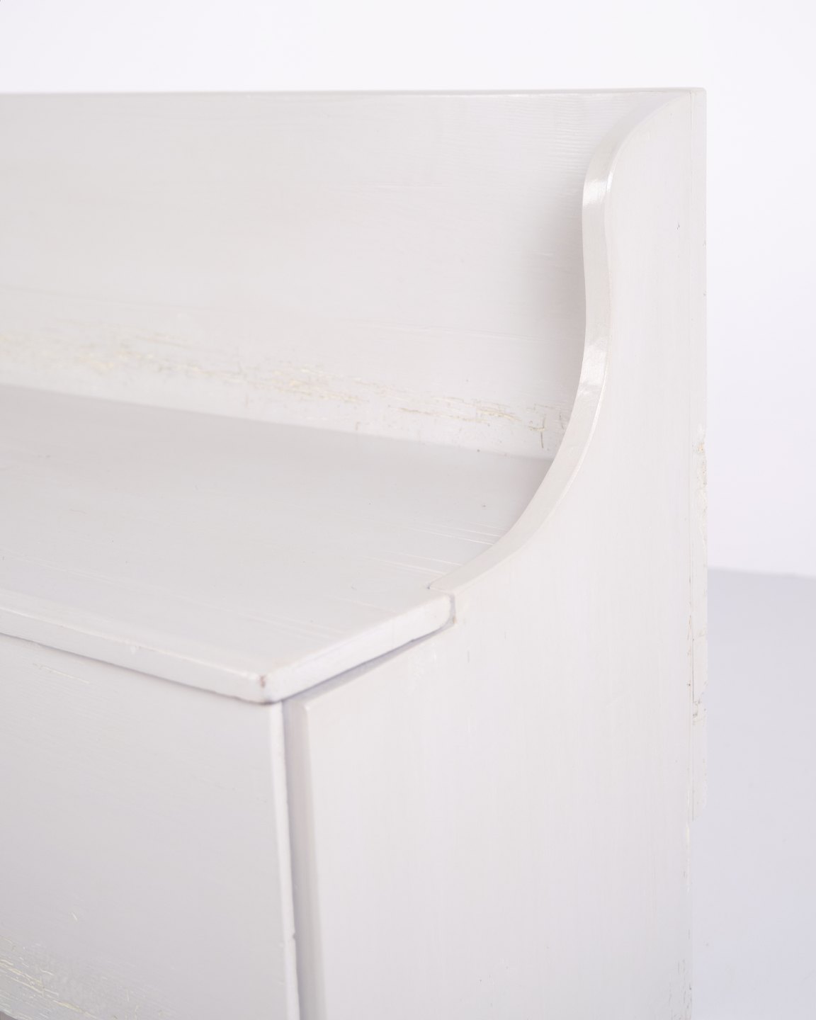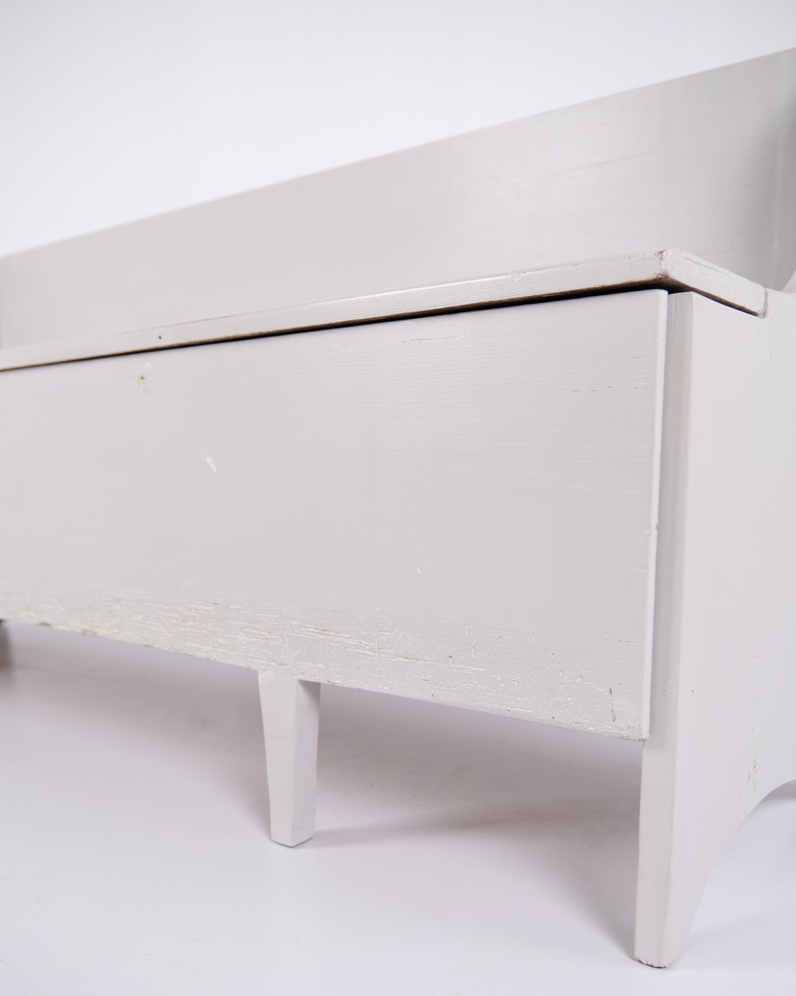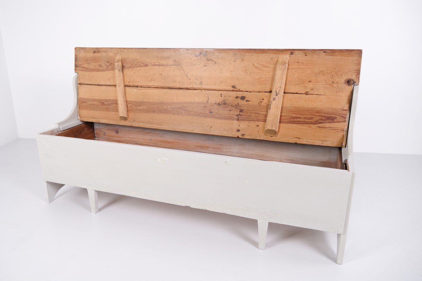 Antique storage bench from the 1890s in grey-painted pine wood. Antique storage bench from the 19th century.