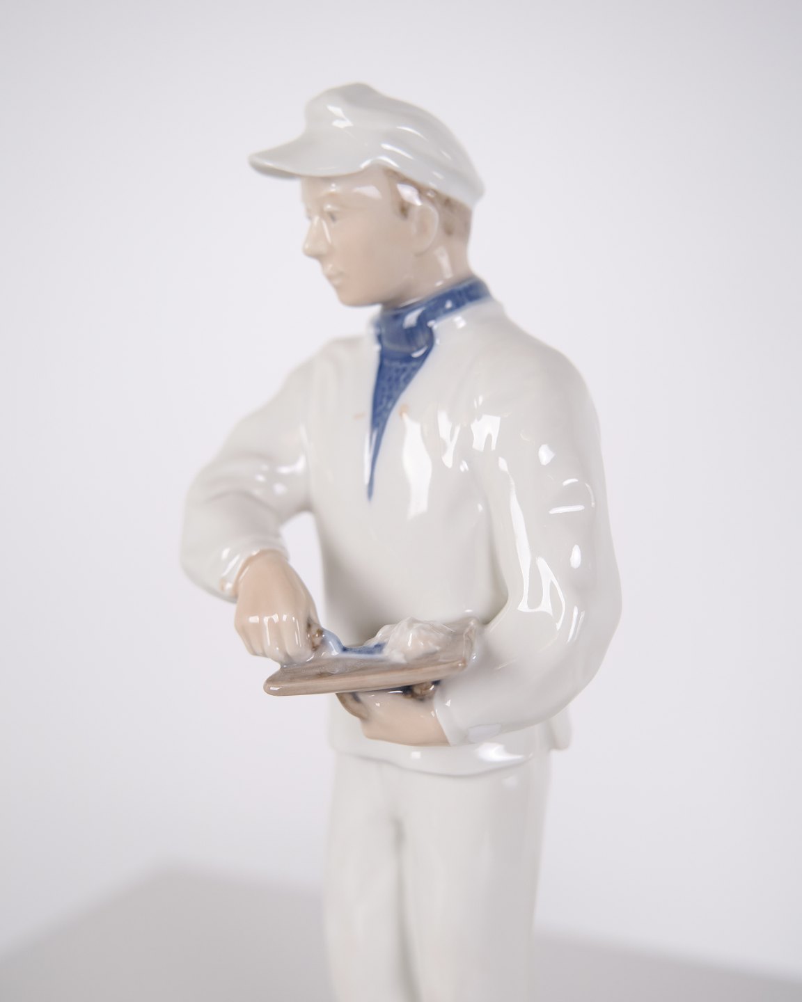 Royal mason figure, model 4377, designed by Johannes Hedegaard for Royal Copenhagen. The figure depicts a mason in work attire and is part of Royal Copenhagen’s figurine production, representing Danish ceramic figure design from the 20th century.