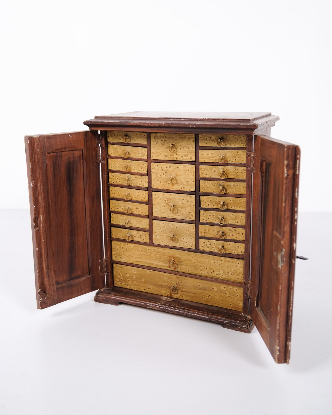 Antique miniature furniture in oak with hand-forged fittings from the 1840s. Unique and decorative collector’s item with historical character.