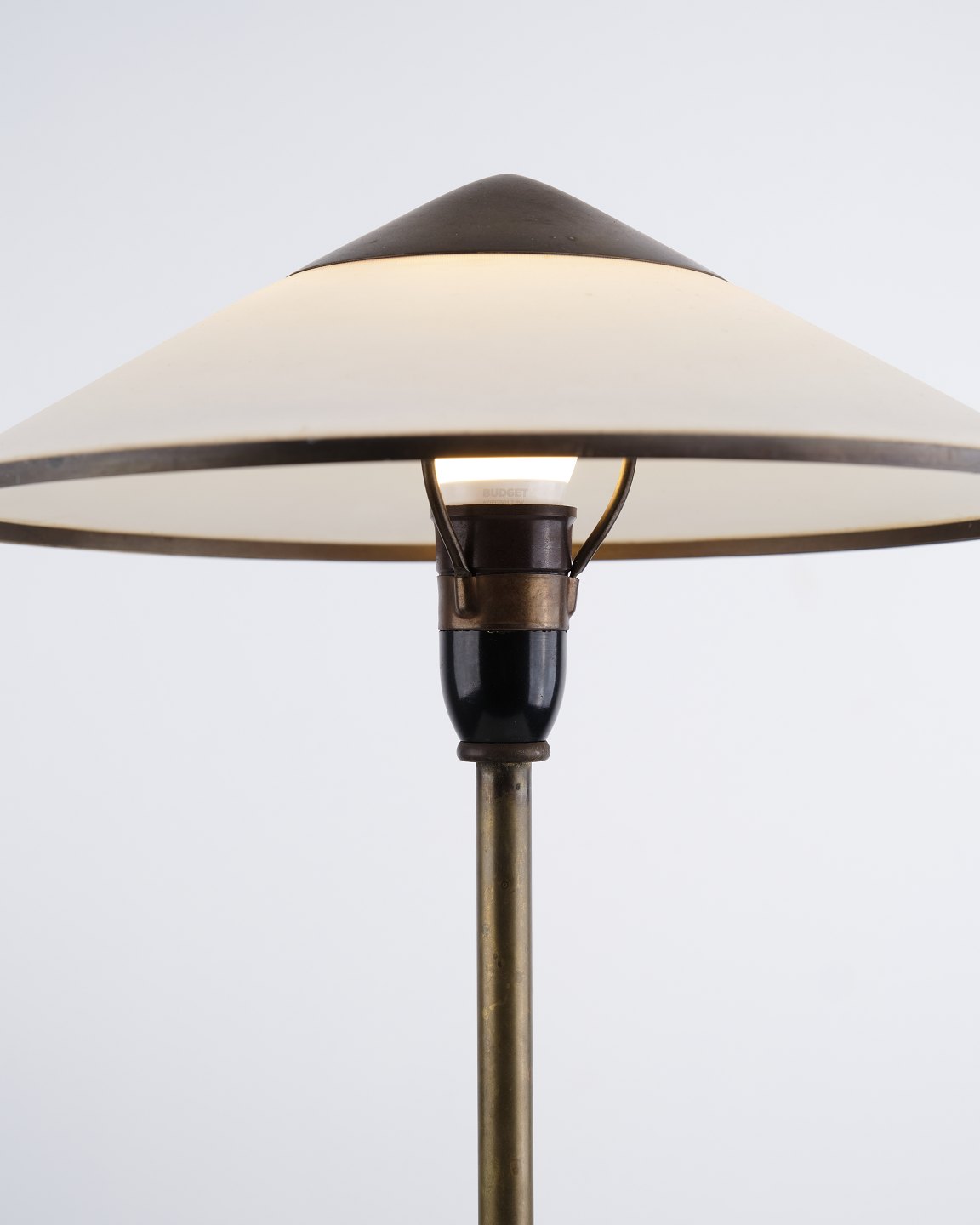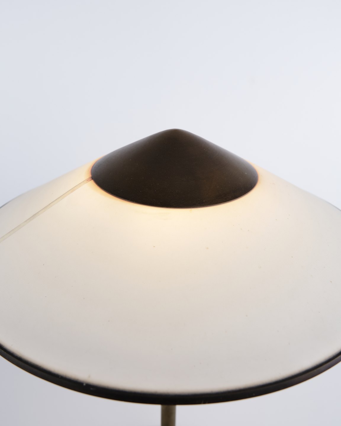 Niels Thykier Kongelys table lamp in brass with off-white shade. Classic Danish design with an elegant and functional light.