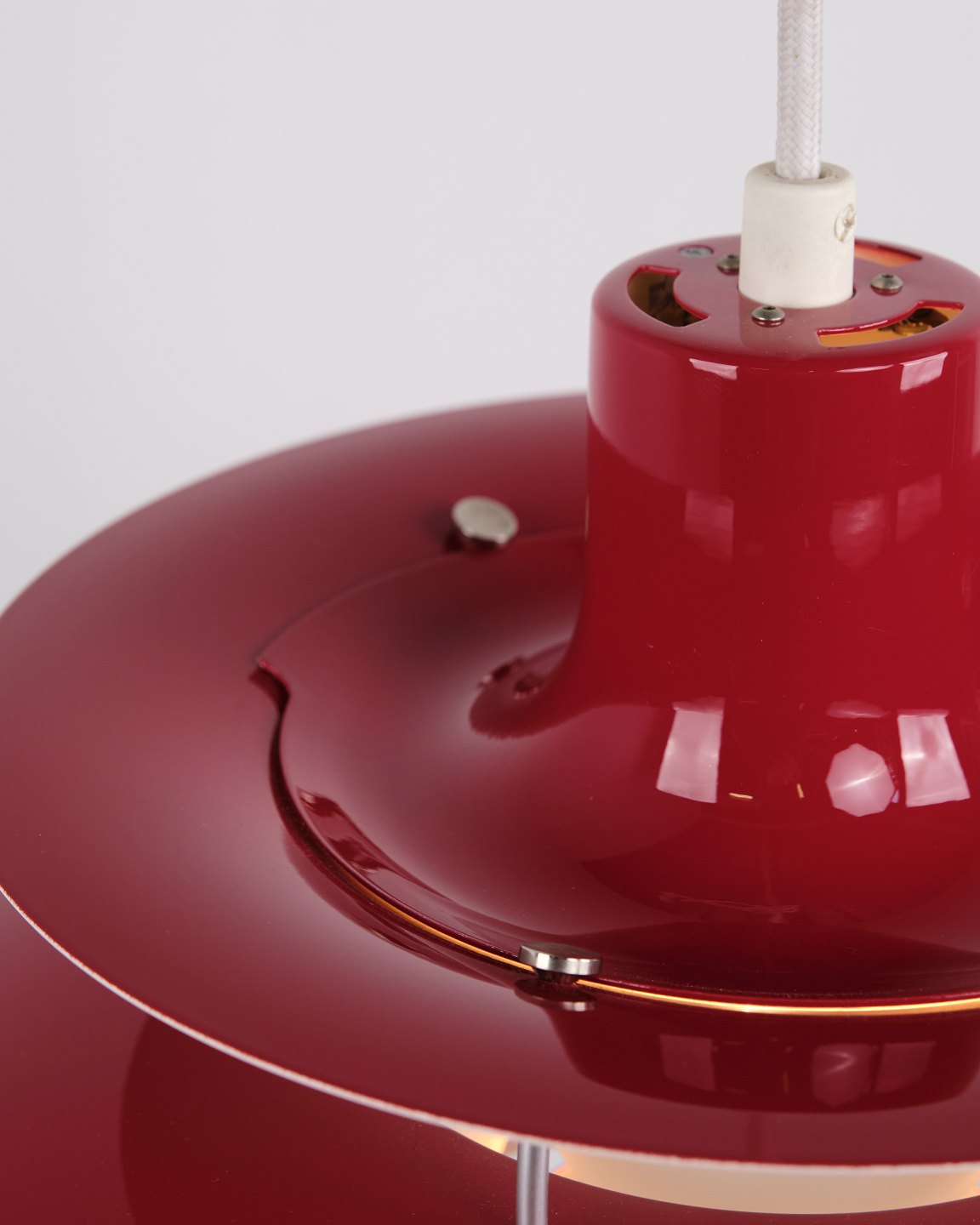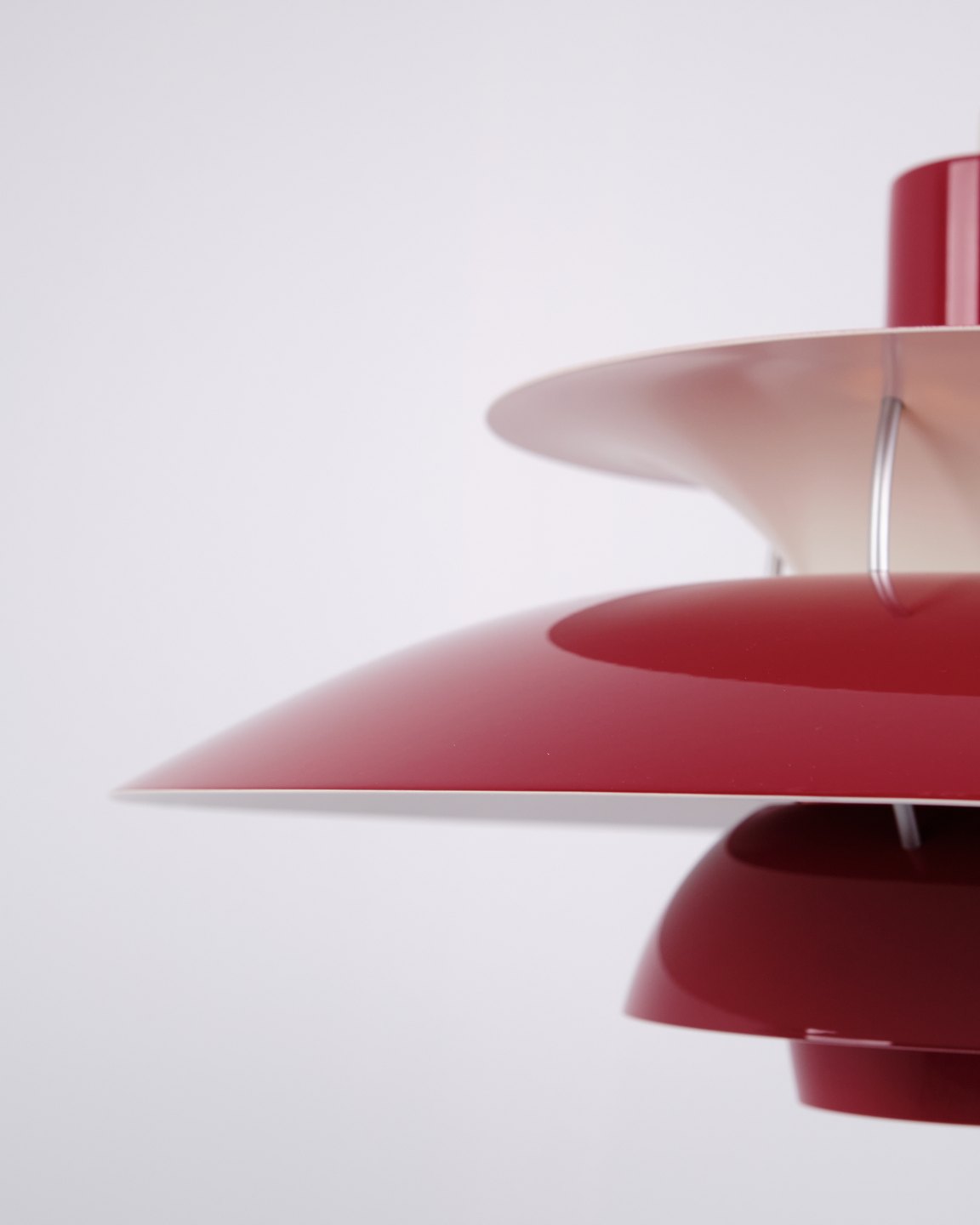PH 5 pendant in red lacquered metal from Louis Poulsen designed by Poul Henningsen. Classic Danish lamp with glare-free and functional light.