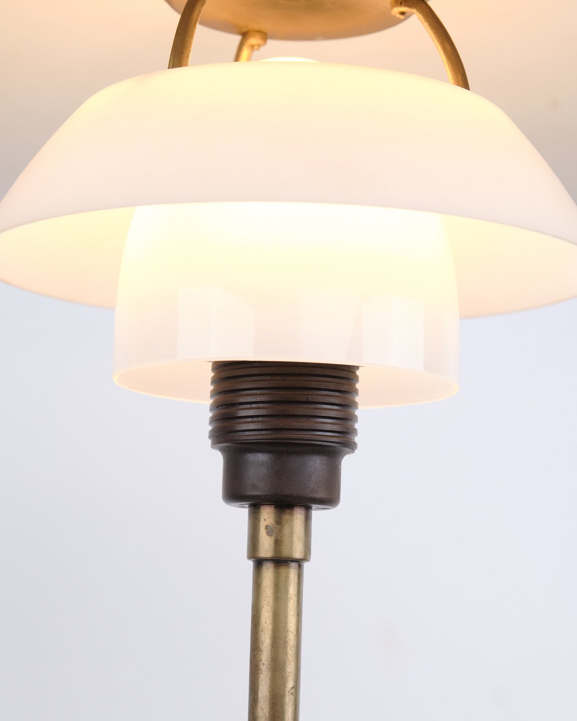— Material: Burnished brass and white opal glass