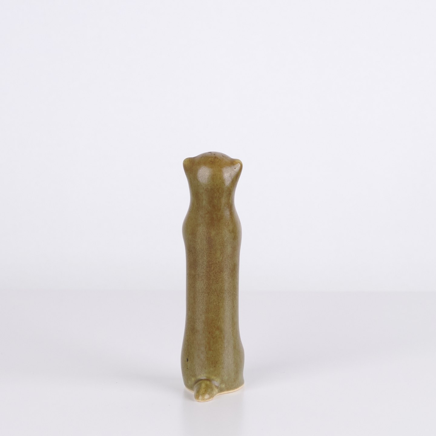 Animal figure by Knud Basse made in glazed ceramic. The figure depicts a ferret or stoat and was produced in Denmark in the 1960s. Knud Basse is known for ceramic animal figures with nature motifs and smaller production series from the period.