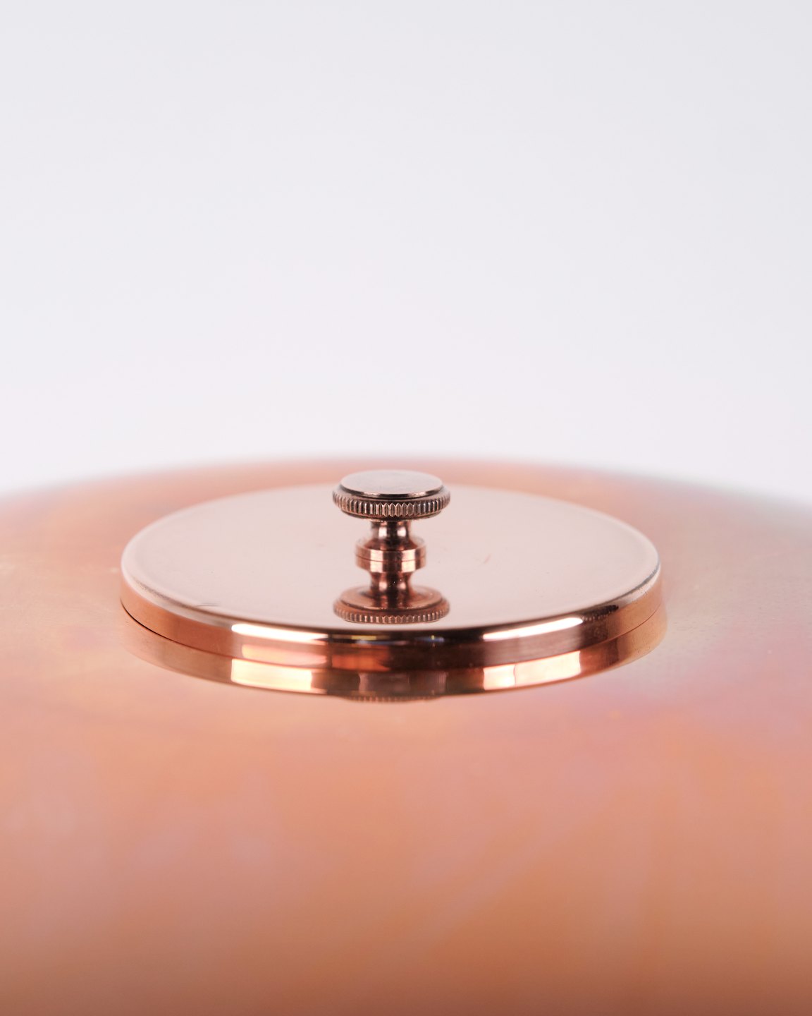 PH table lamp model PH 3½-2½ Limited Edition designed by Poul Henningsen and manufactured by Louis Poulsen. The lamp is made of copper with top shade in copper and two lower shades in white opal glass. This version includes the copper top shade only. The model was produced and sold for a limited period in 2015, making it particularly sought after among collectors of PH lamps and Danish lighting design.