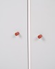 Montana cabinet module from the Montana System designed by Peter J. Lassen for Montana. Made of lacquered MDF with white корпус, two mint green doors and brown handles. Suitable as a wall cabinet, hallway unit or storage module. 2 pieces in stock.