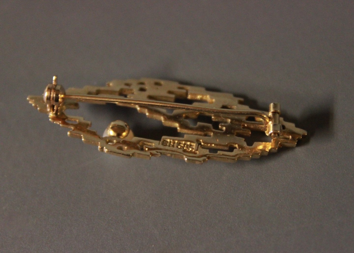 14 ct. goldbrooch with small Pearl, stamped BH by the Goldsmith Bernhard Hertz.