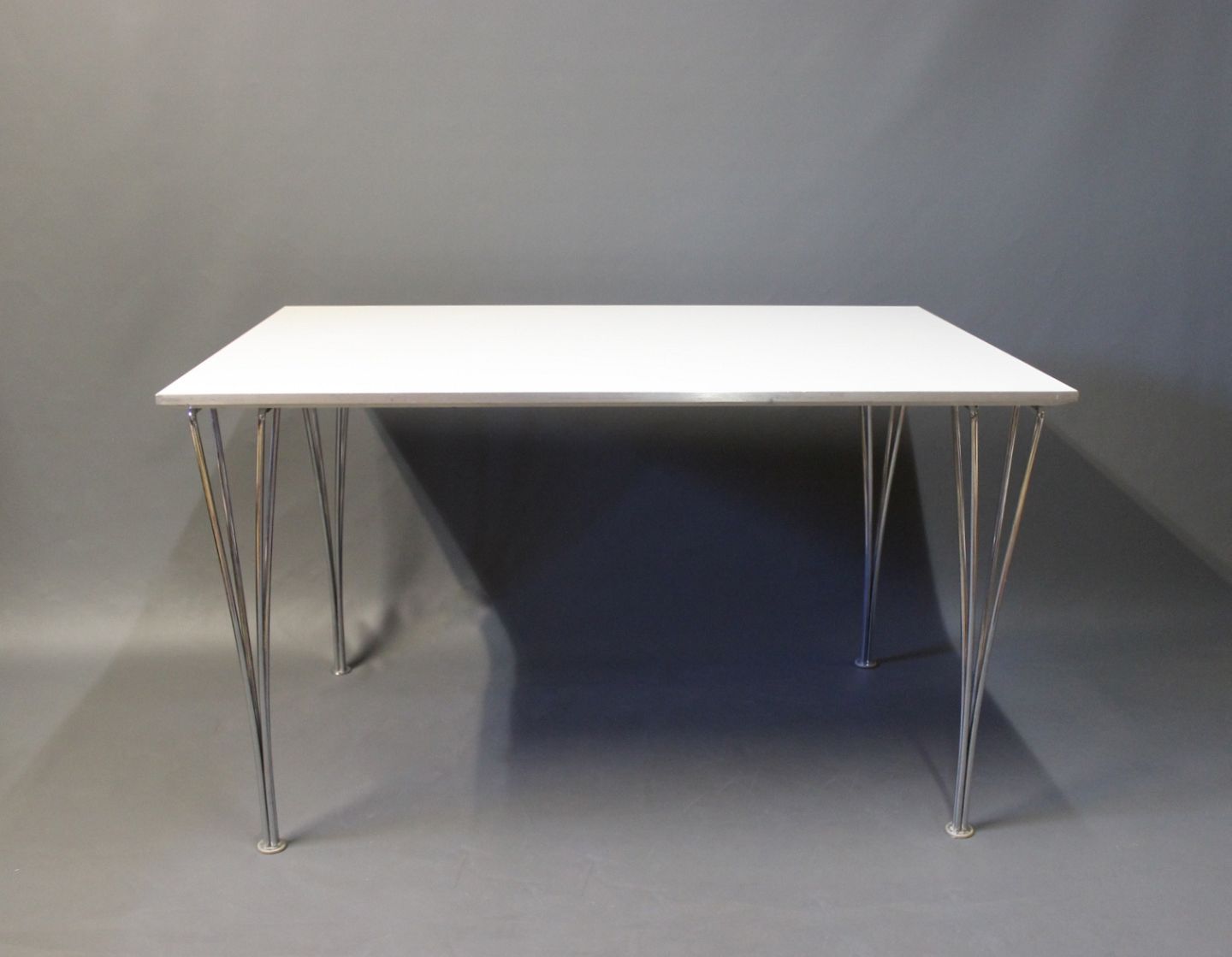 Rektangulært spisebord designet af Piet Hein, Arne Jacobsen og Bruno Mathsson i 1960erne og fremstillet af Fritz Hansen i 1994. Bordet er med plade af hvidt laminat med kant af aluminium, monteret med spændben i forkromet stål.