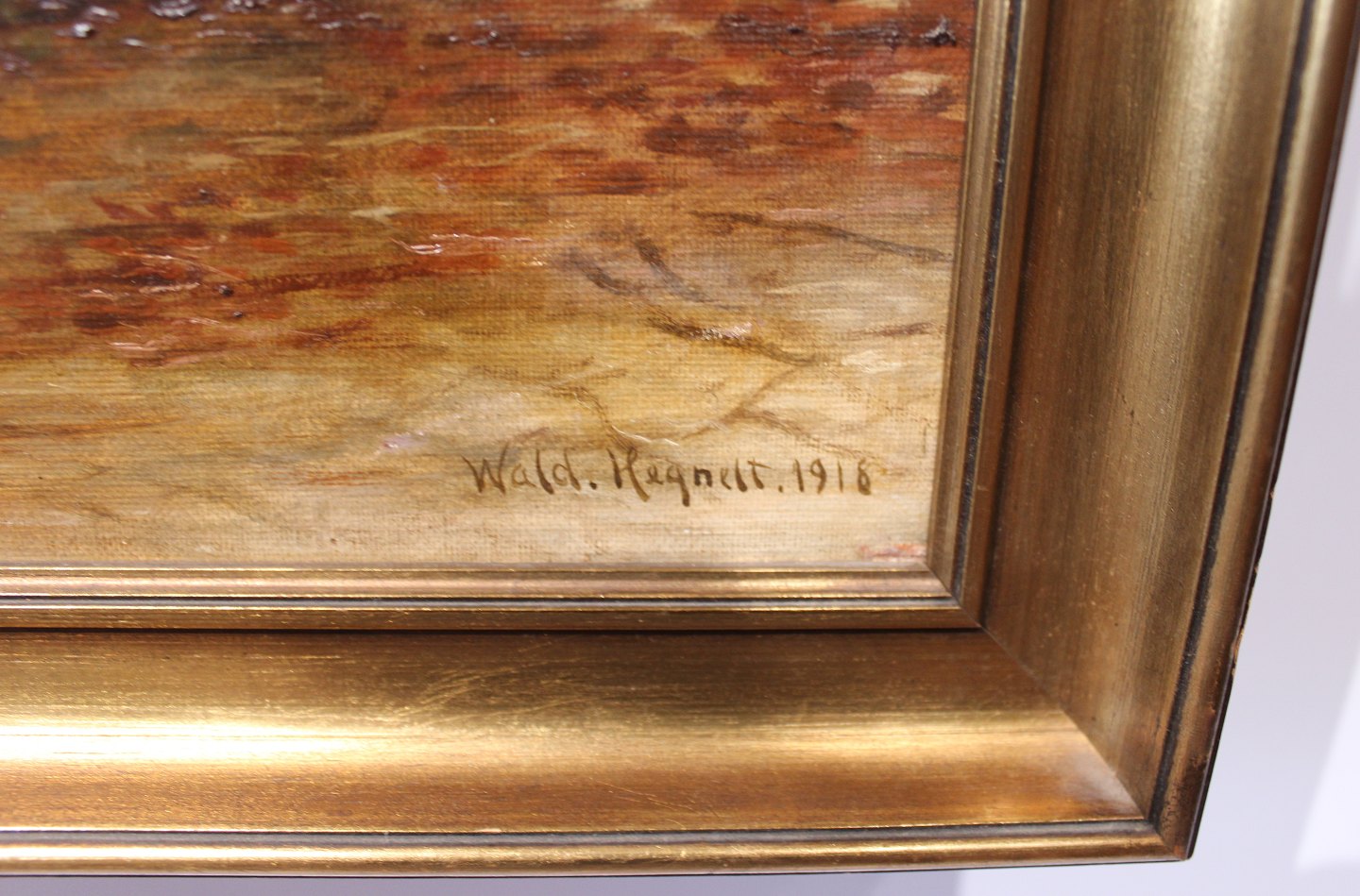SoldOil painting of danish nature/forest signed by the danish artist Wald Kegnet. The painting is in great vintage condition.