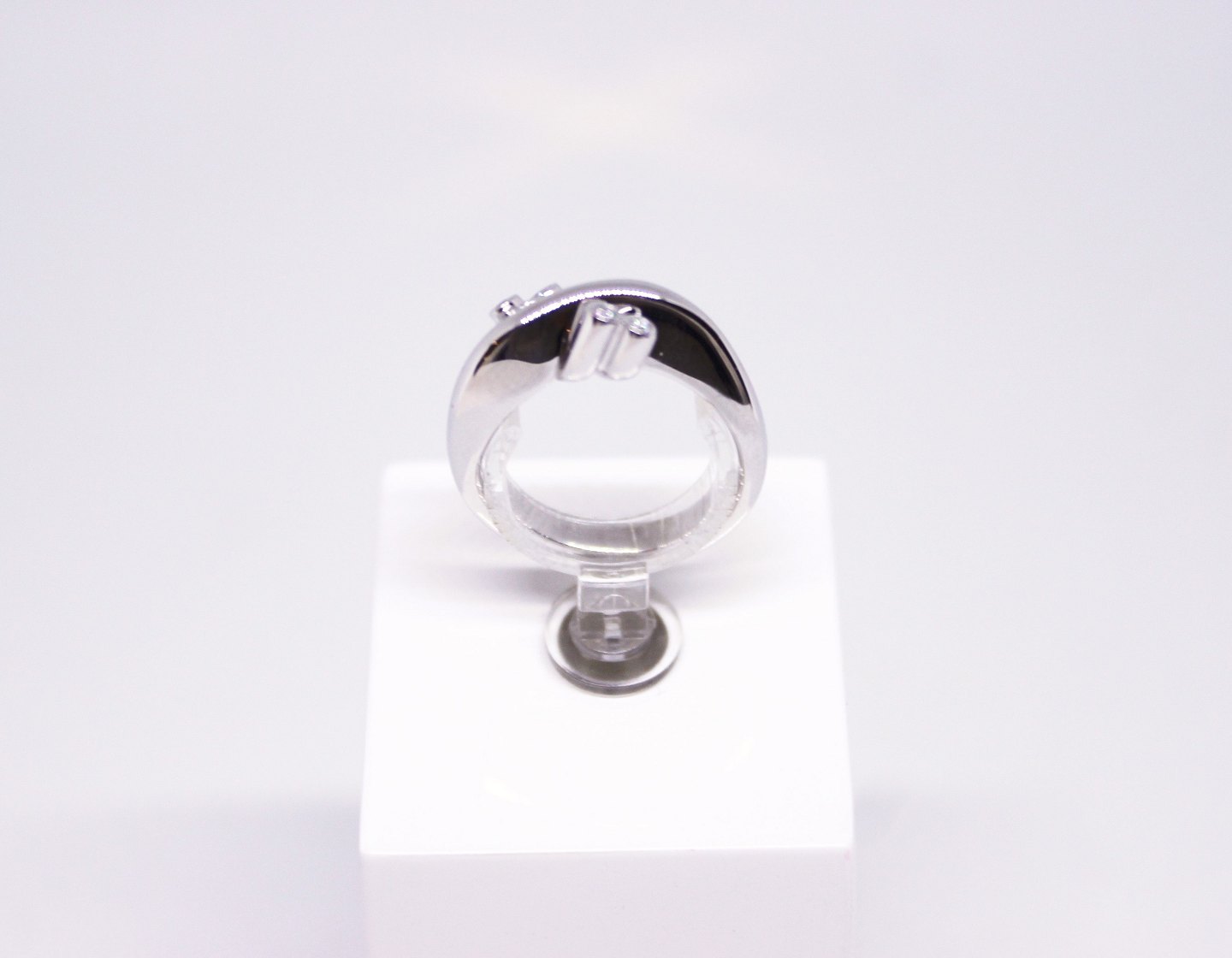 Ring of 14 ct. white gold decorated with four diamonds and stamped P.Bo.