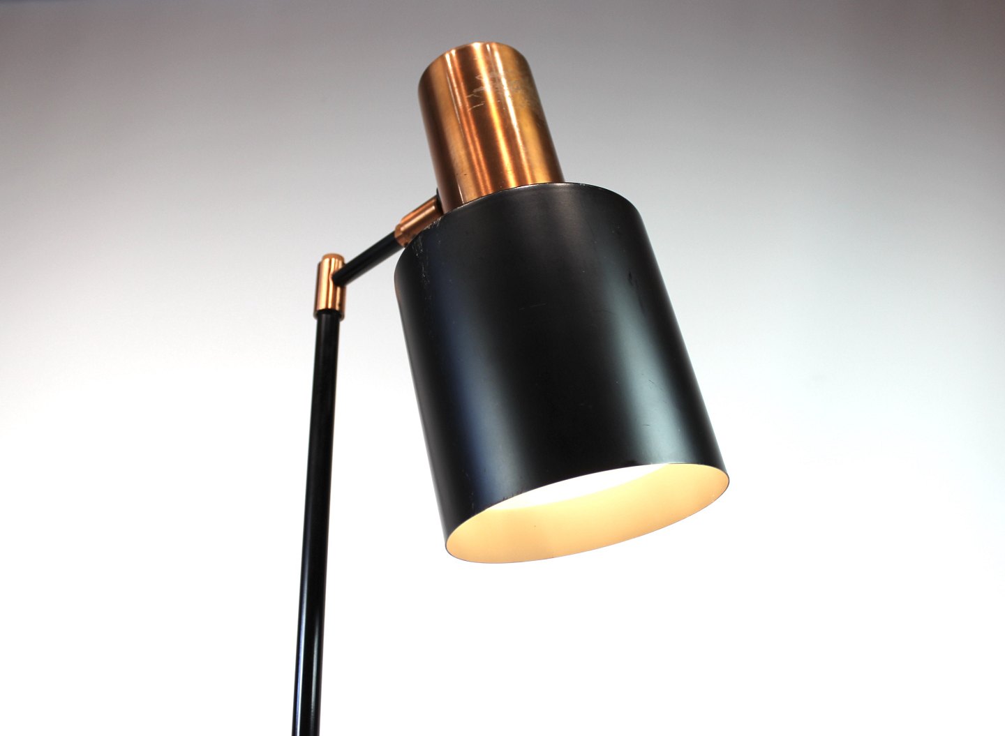 Floor lamp by Jo Hammerborg for Fog & Mørup from the 1970s. The lamp is of copper and black metal.