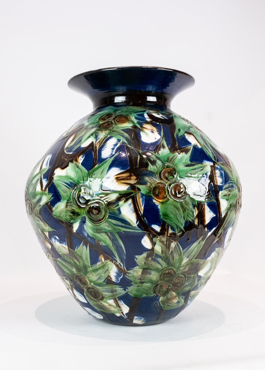 Large ceramic floor vase glazed in green colors by Herman A. Kähler.