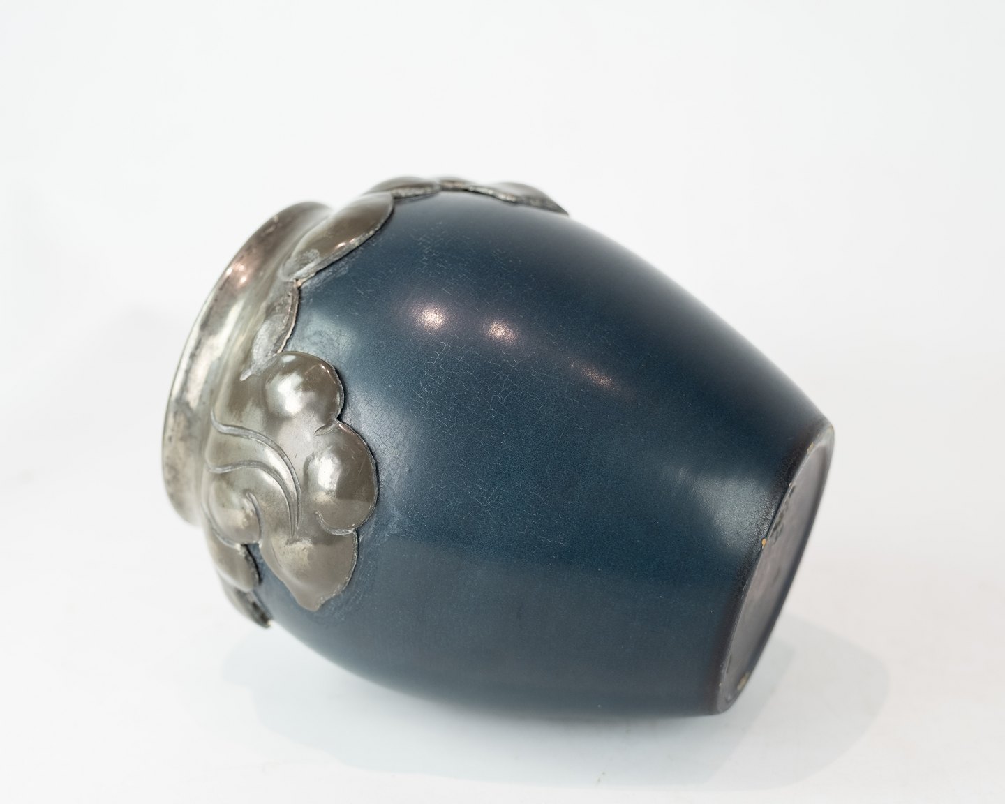 SoldCeramic vase in dark blue decorated with metal edge by Ibsen Enke.