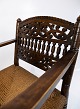 A pair of antique armchairs of dark wood and papercord from the 1920s.