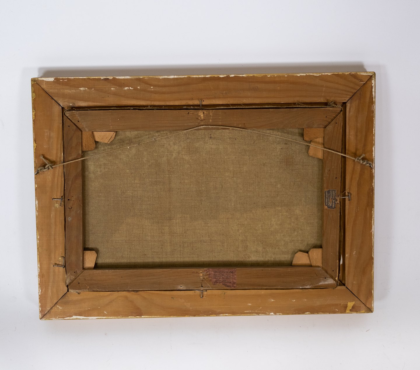 Oil painting with country motif and gilded frame, signed A. Toftlind.