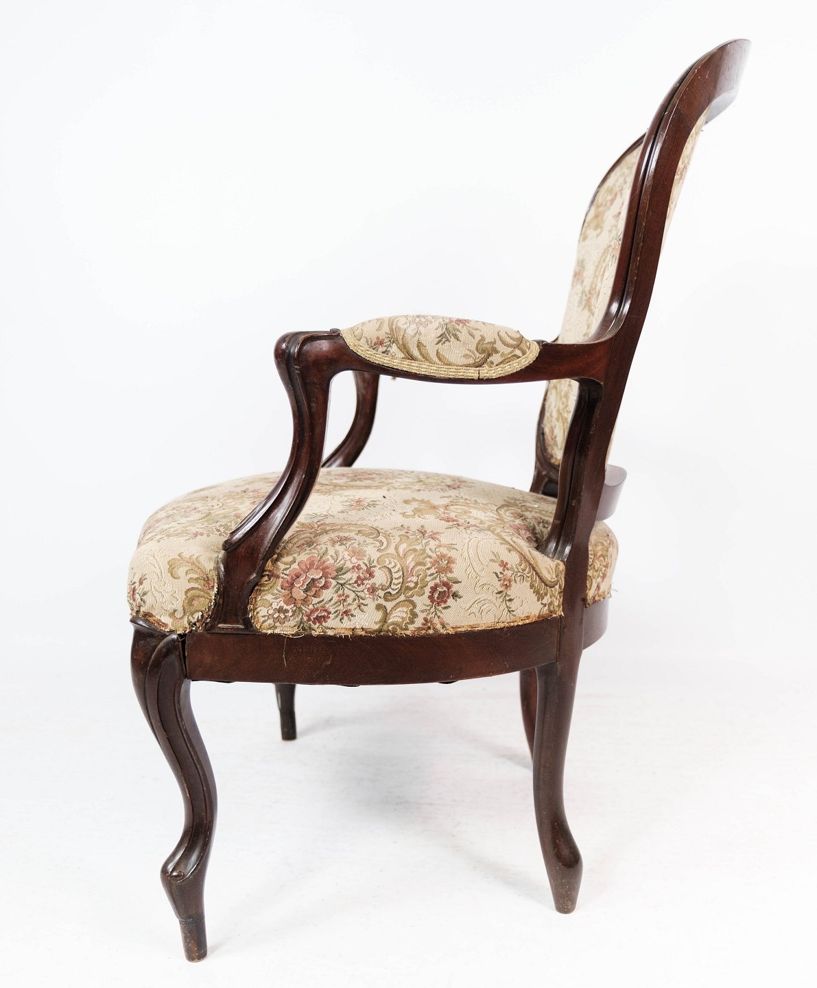 Rococo armchair of rosewood and upholstered with floral fabric, in great antique condition from around 1880.