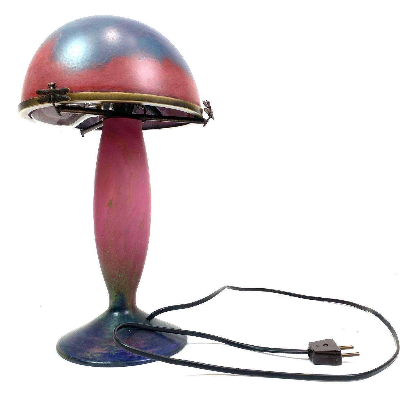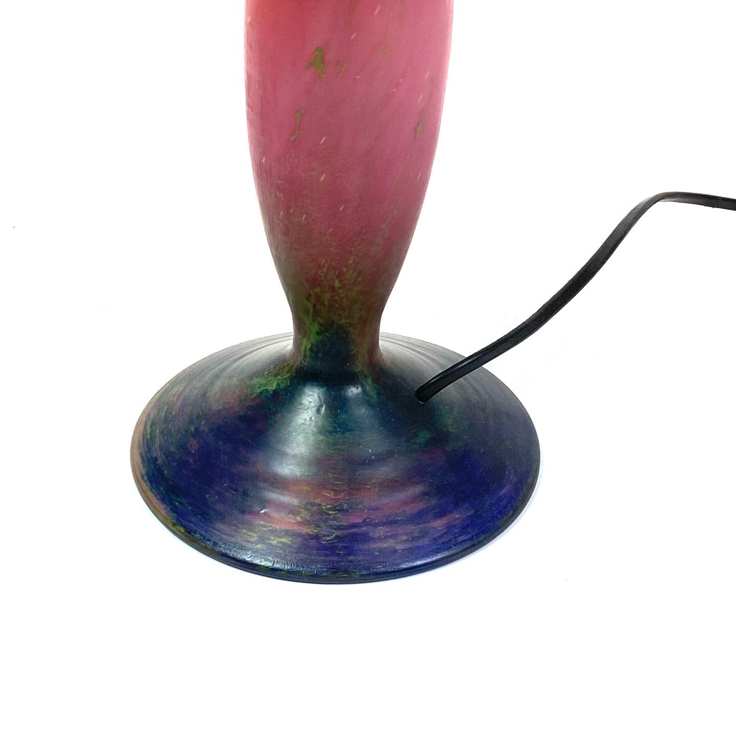 The signature of Le Verre Francais, a renowned glassworks in France, adds an extra dimension of value and authenticity to the lamp. It emphasizes its origins and the tradition of craftsmanship that it represents.