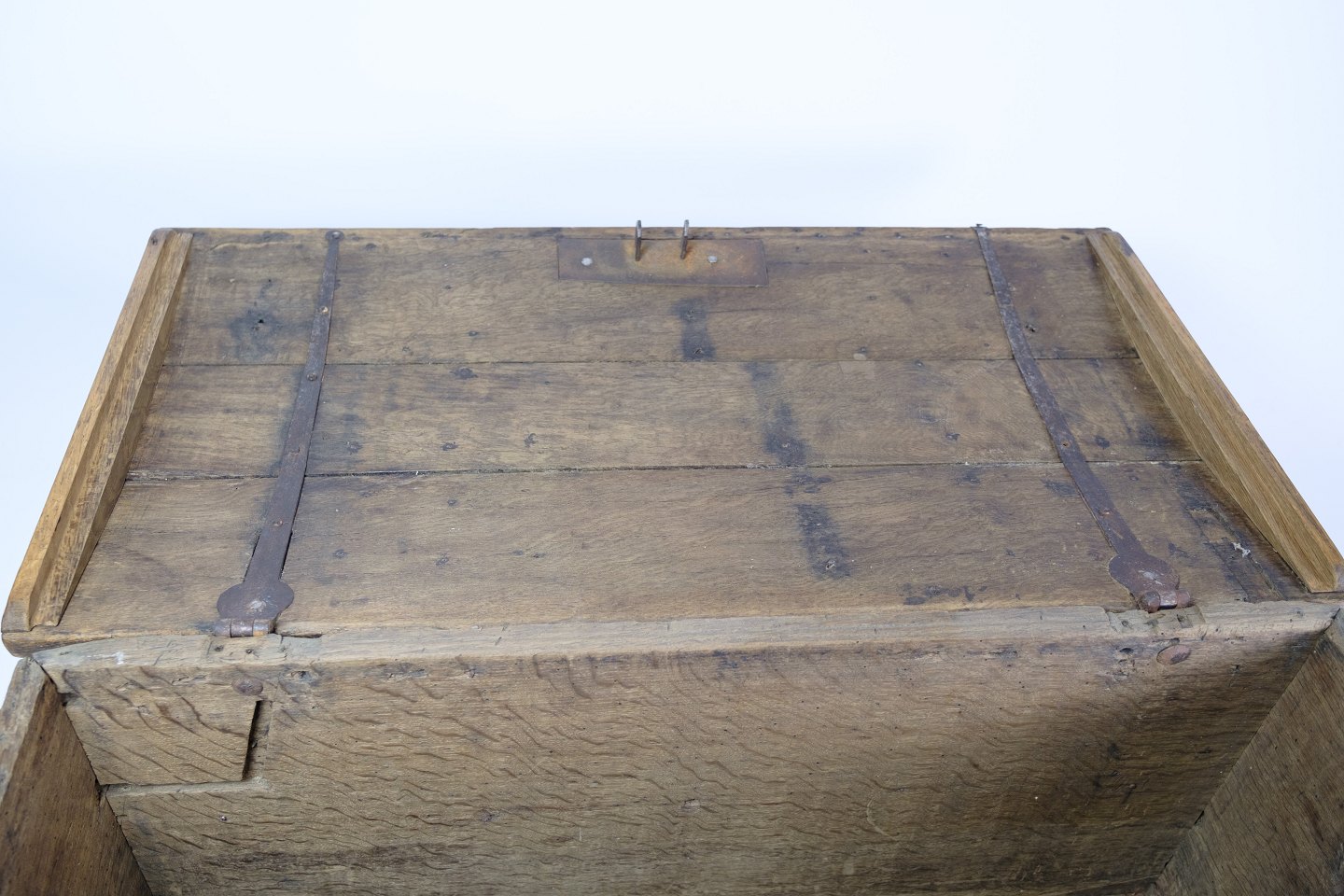 Sønderjysk egetræs kiste med udskæringer fra omkring år 1760'erne. Sjælden størrelse i flot stand.