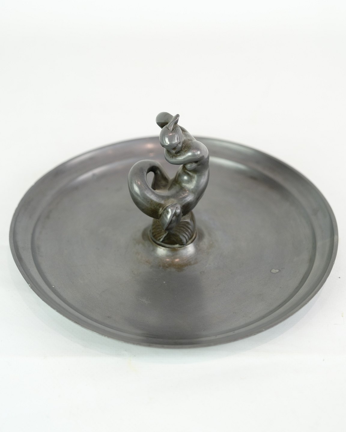 Dish, designed by Just Andersen with a motif of a mermaid figure in disco metal from the 1930s. Often used as a key dish for the desk or entrance.