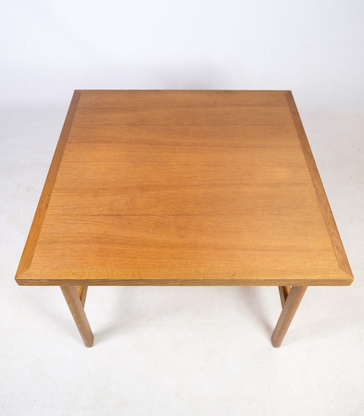 Square coffee table of veneered oak, designed by Børge Mogensen, manufactured by FDB Møbler from around the 1960s.