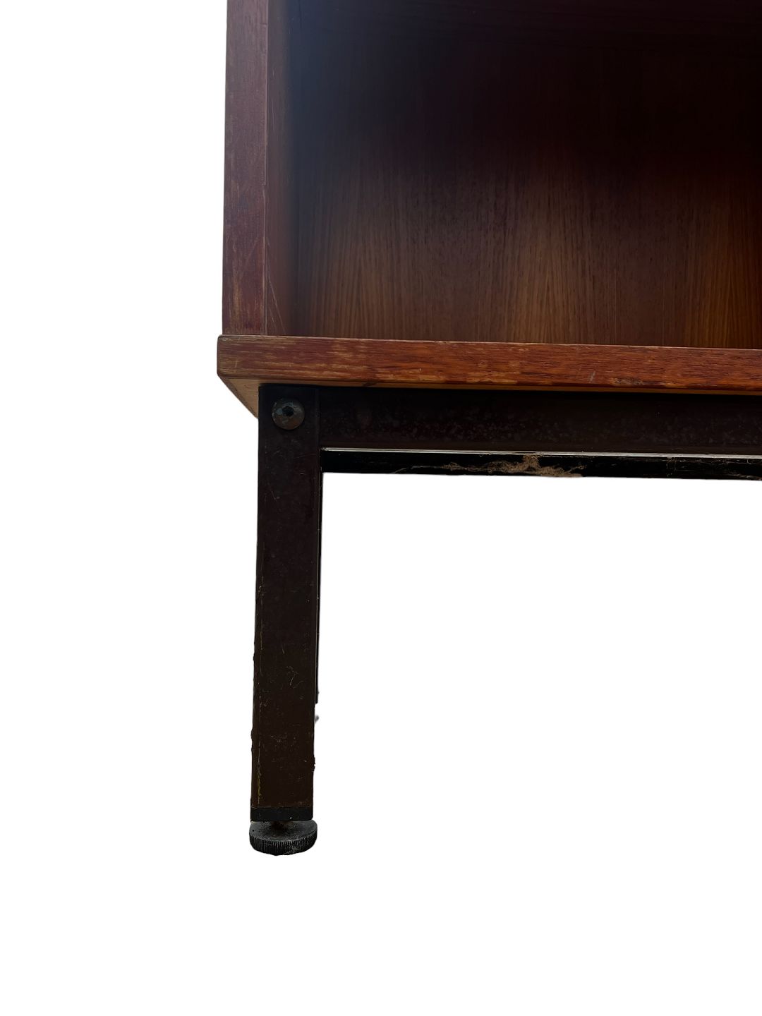 The warm colors and natural beauty of the teak add character to any room, while the slim metal legs give a light and airy look. With its timeless appeal, this bookcase will be an impressive and functional piece of furniture that will fit perfectly into any home.
