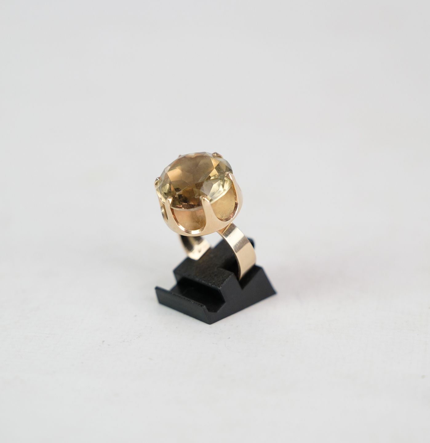 14 carat gold ring stamped Finland 585 with a large diamond cut citrine set with 6 strong claws.