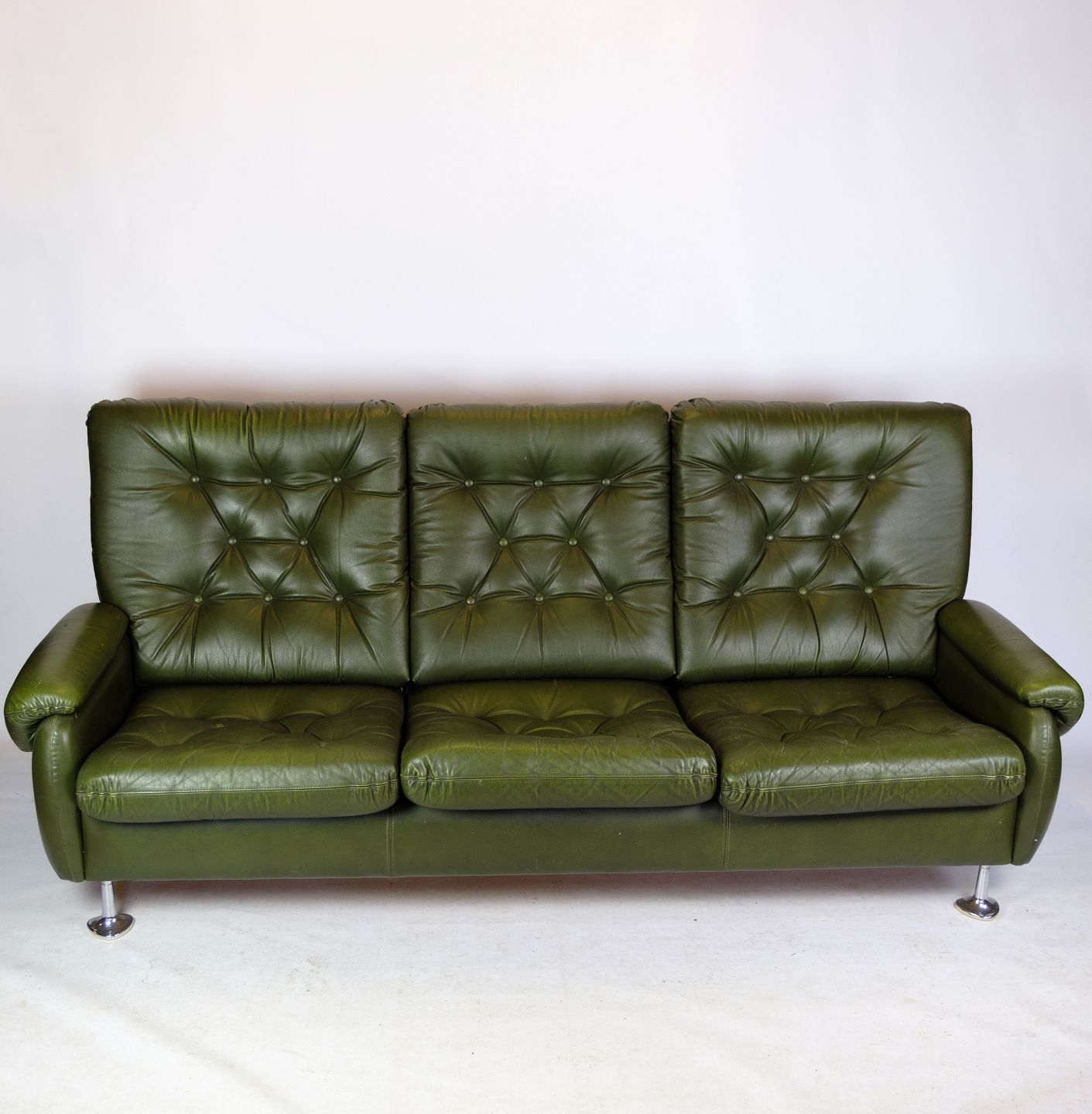 3-Pers. Sofa - Mørke Grønt Læder - Chrome Ben - 1970
