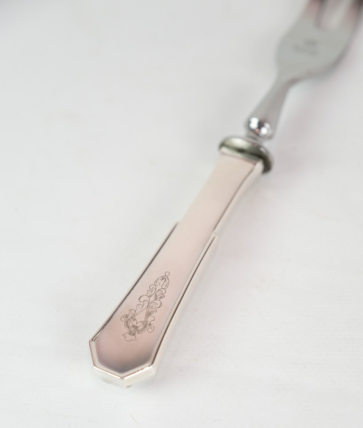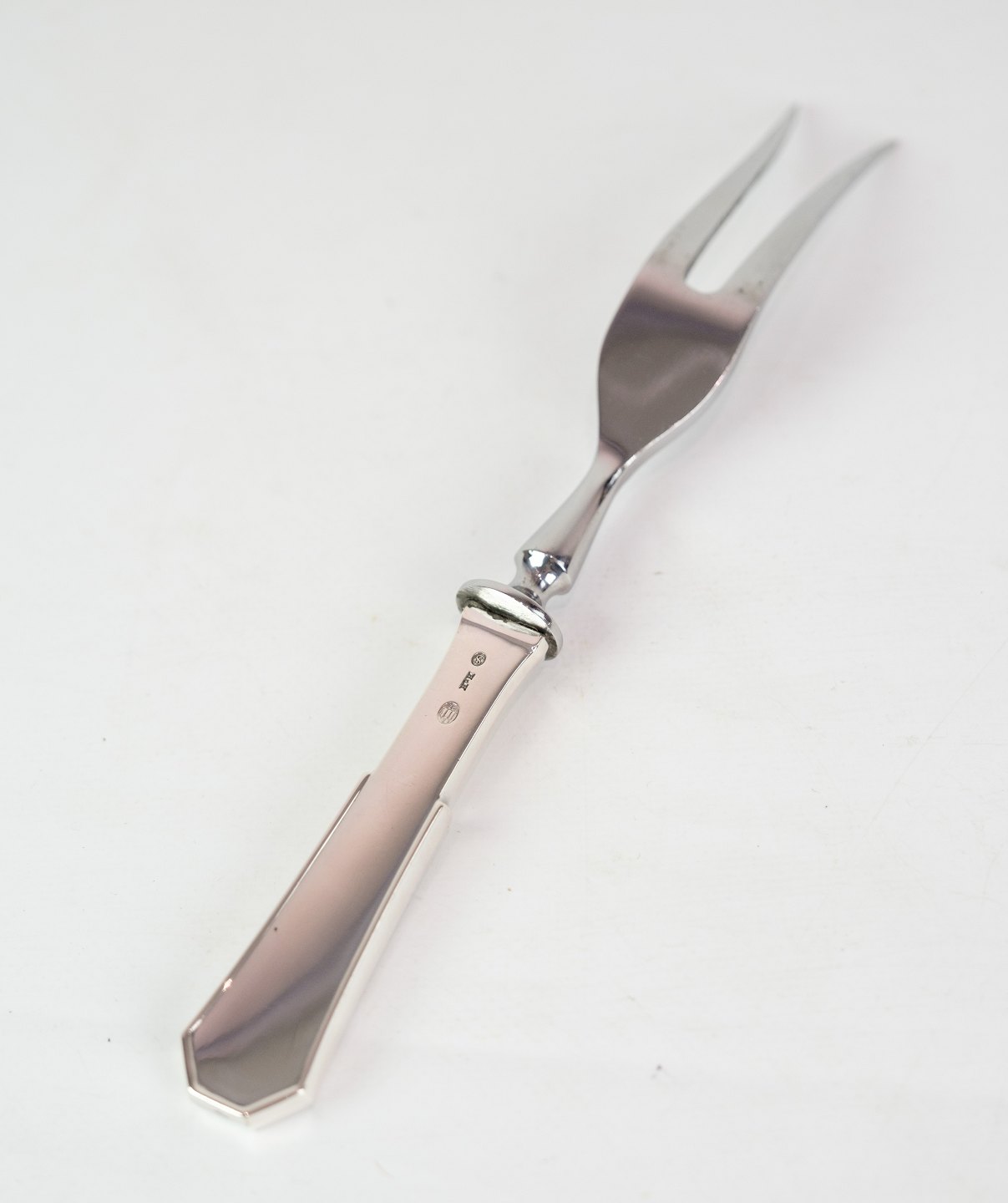 Roasting fork by Hans Hansen heirloom silver no. 8 of partially rusted stainless steel of very good quality.