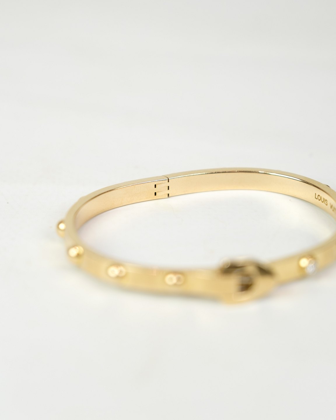 Please contact us for price information18 carat gold bracelet adorned with a diamond from Louis Vuitton made in France. The bracelet has 2 stamps 750 & 16, which indicate that the bracelet is made of 18 carat gold and the size.