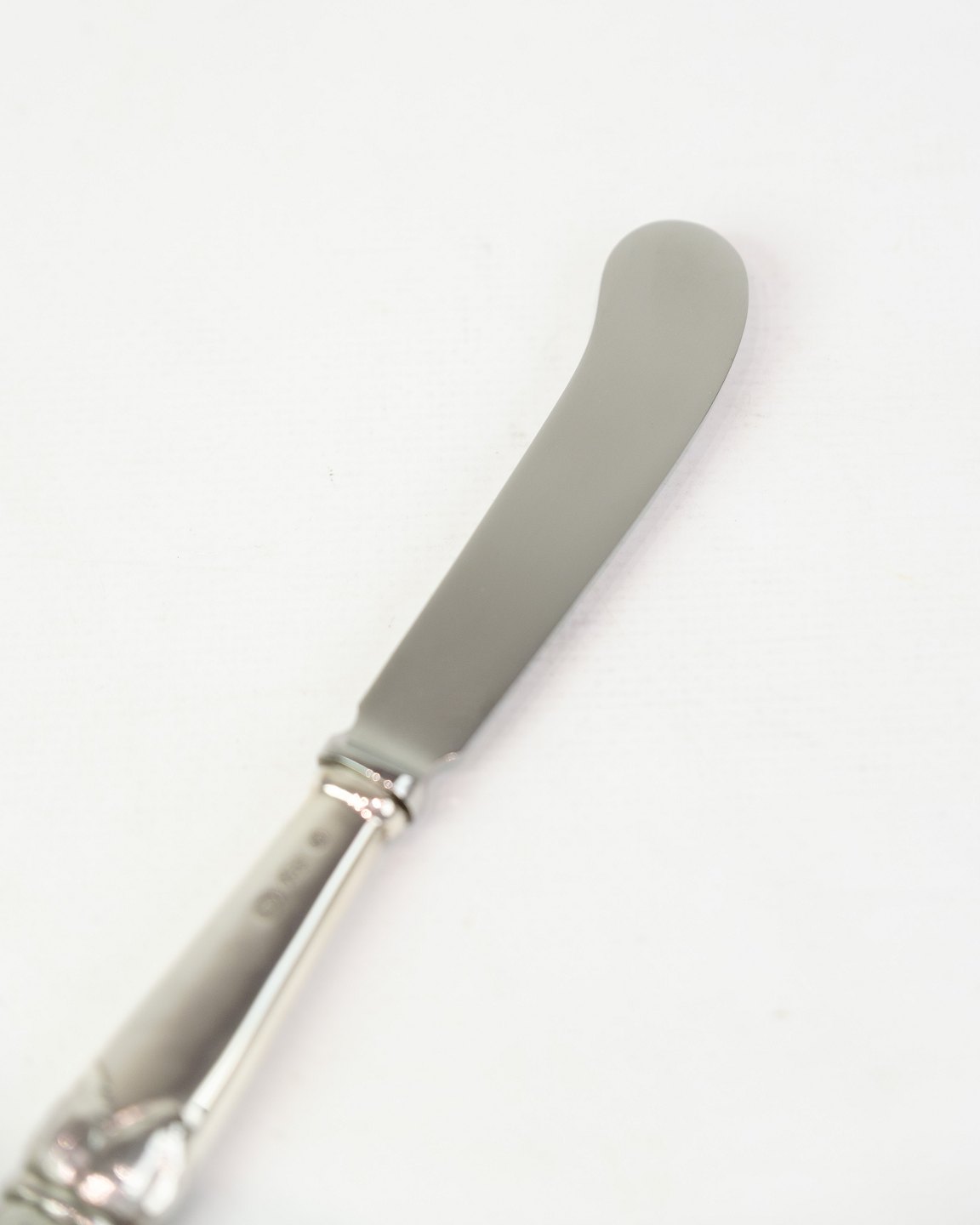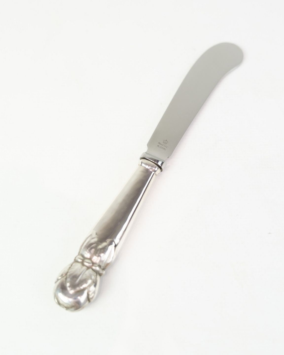 Butter knife in three-tower silver, hallmarked 825, from A.C. Illum, Copenhagen. Made around the middle of the 1900s. Length 17 cm. Elegant Danish silver design.