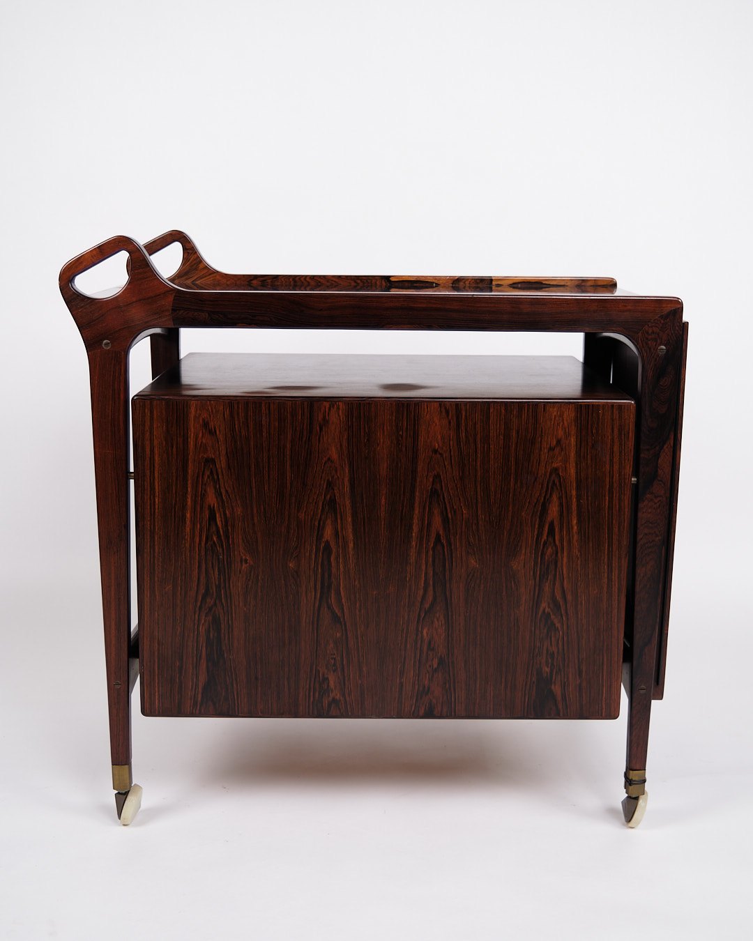 Bar Cabinet On Wheels - Foldable Top - Rosewood and Black Formica - Solid Rosewood Handles - Dyrlund