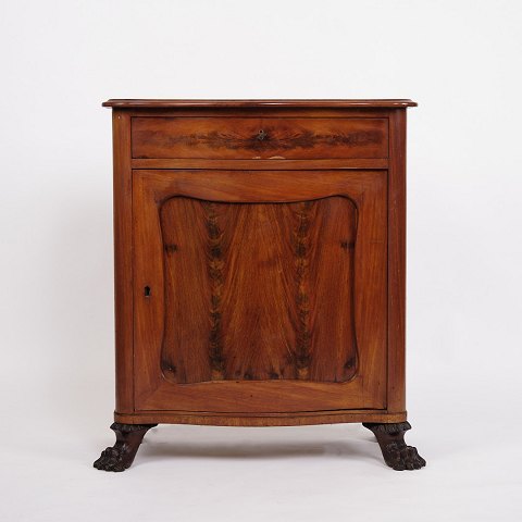 wall-mounted display cabinet from the 1890s, made of hand-polished mahogany. The cabinet has classic proportions and appears with a period design from the late 19th century, where functionality and decorative expression went hand in hand.