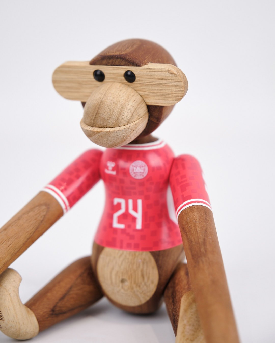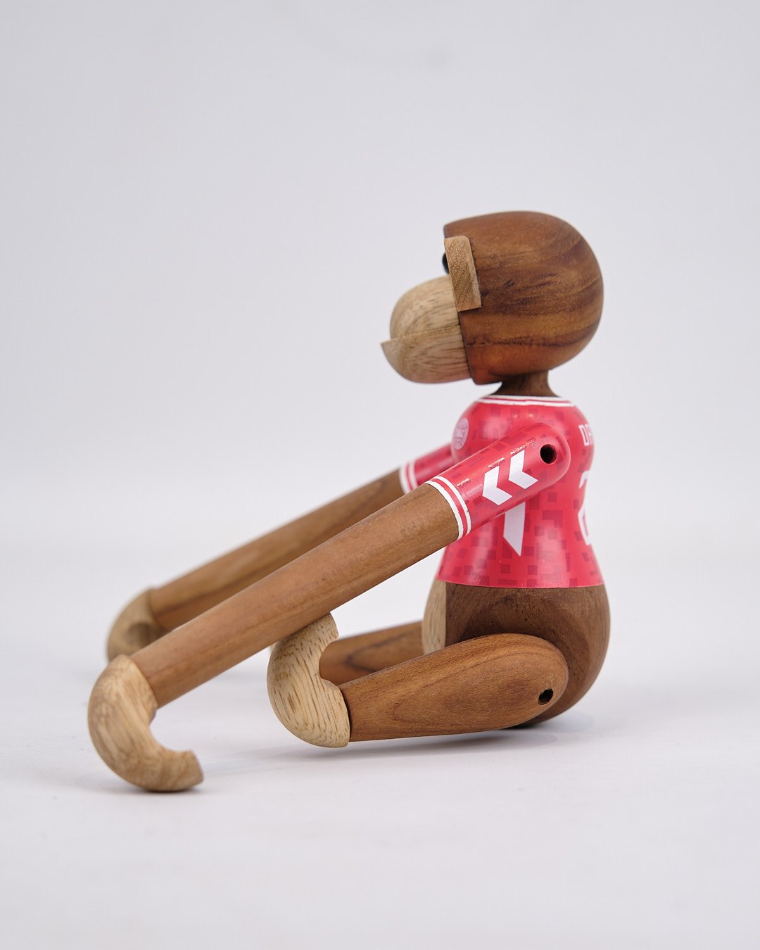Kay Bojesen monkey, small model in teak and limba. DBU Herrelandsholdet limited edition. Classic Danish design icon.