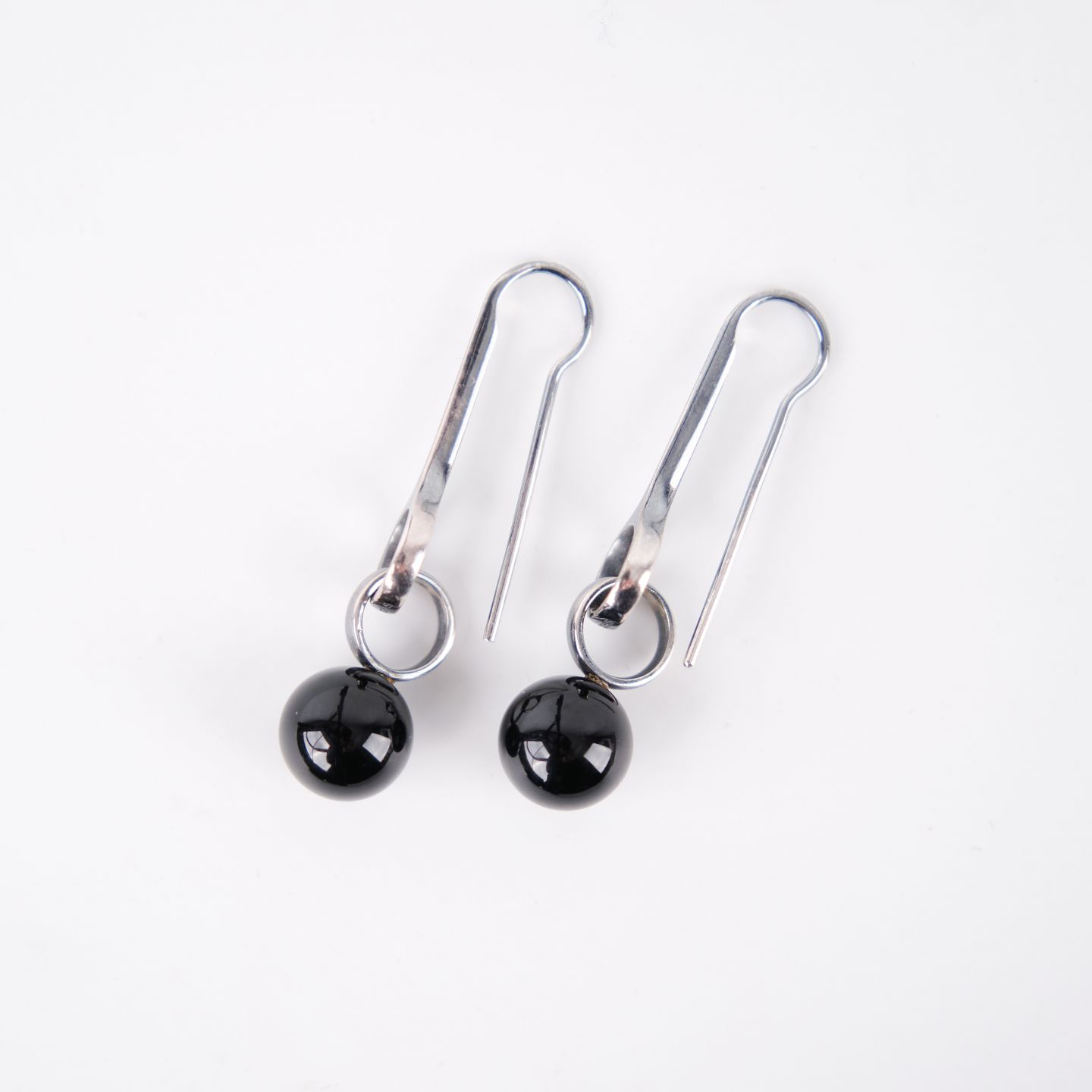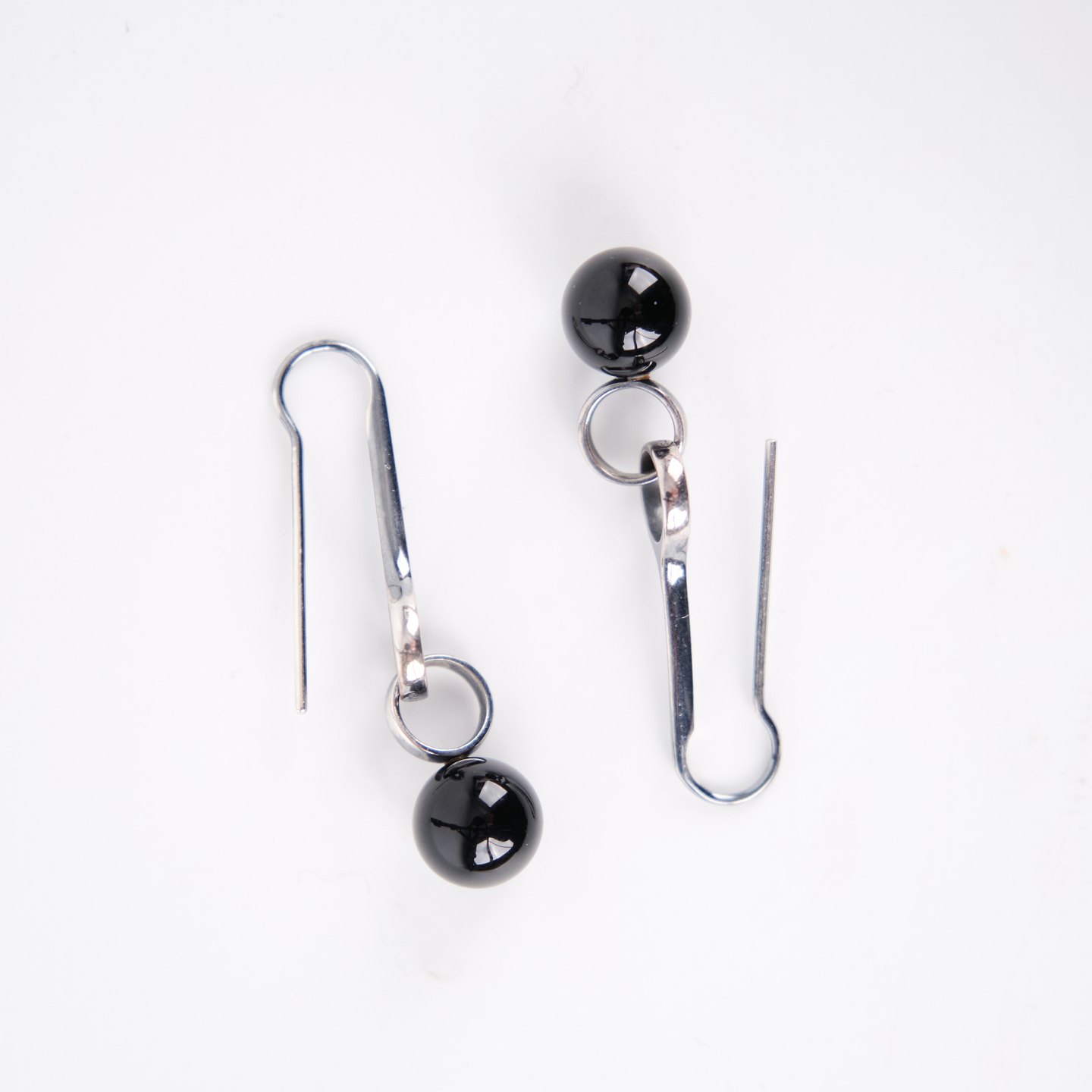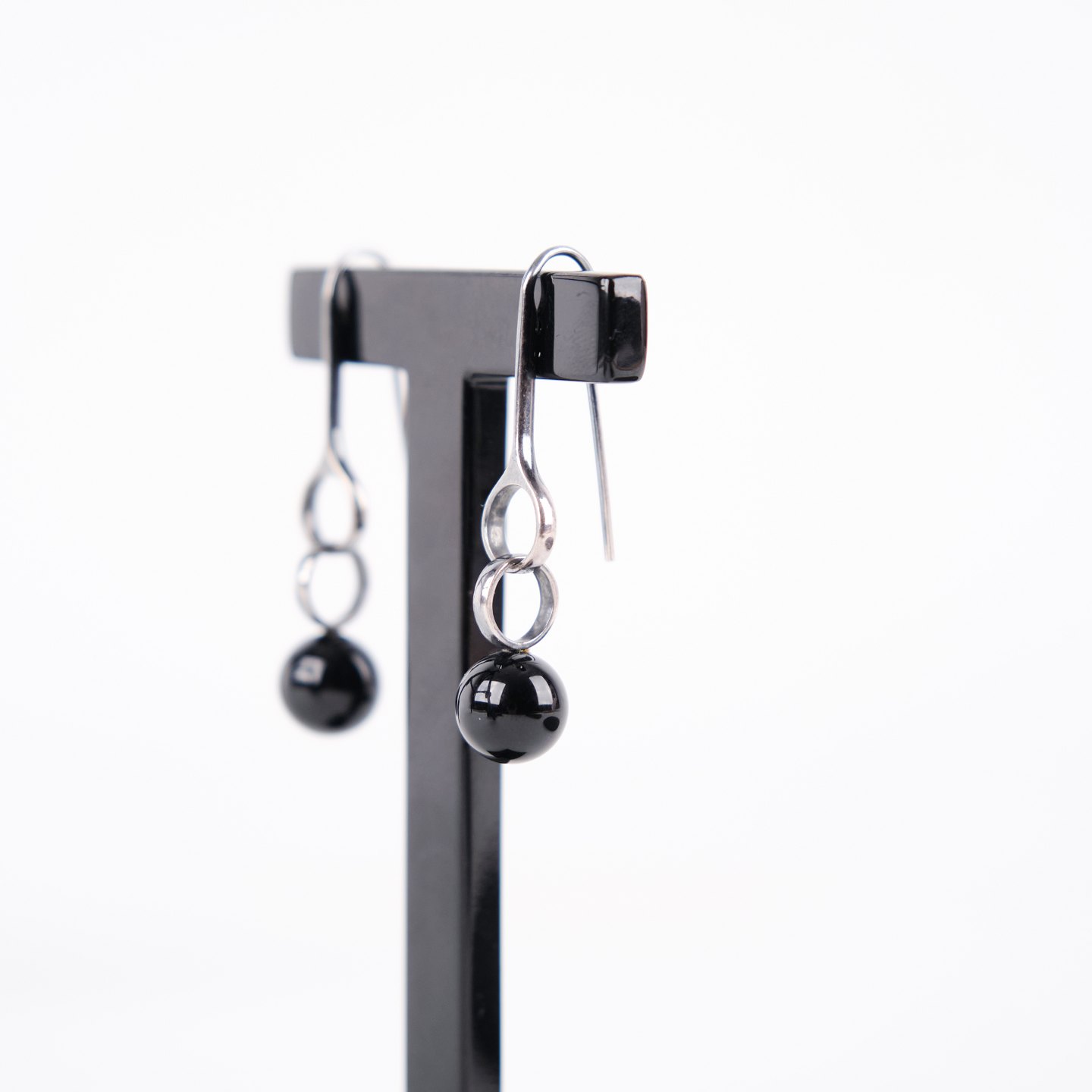Earrings / Ear Hooks – Sterling Silver 925S – Black Agate – Regitze Overgaard for Georg Jensen – Model 473A
