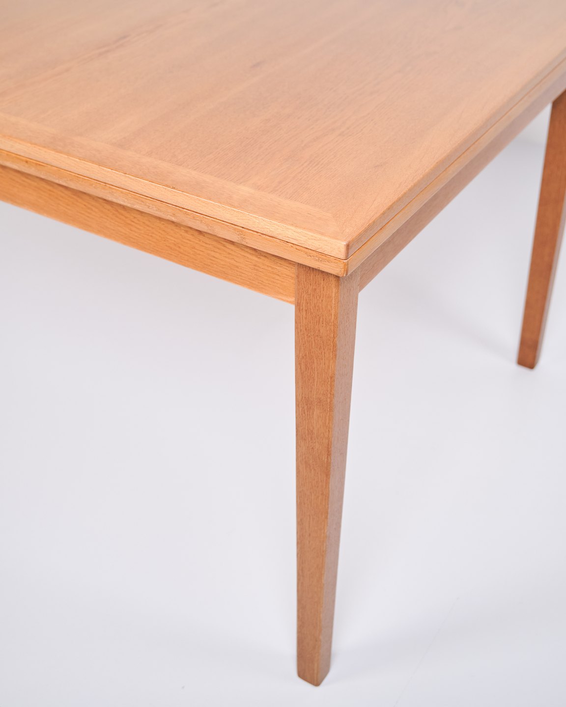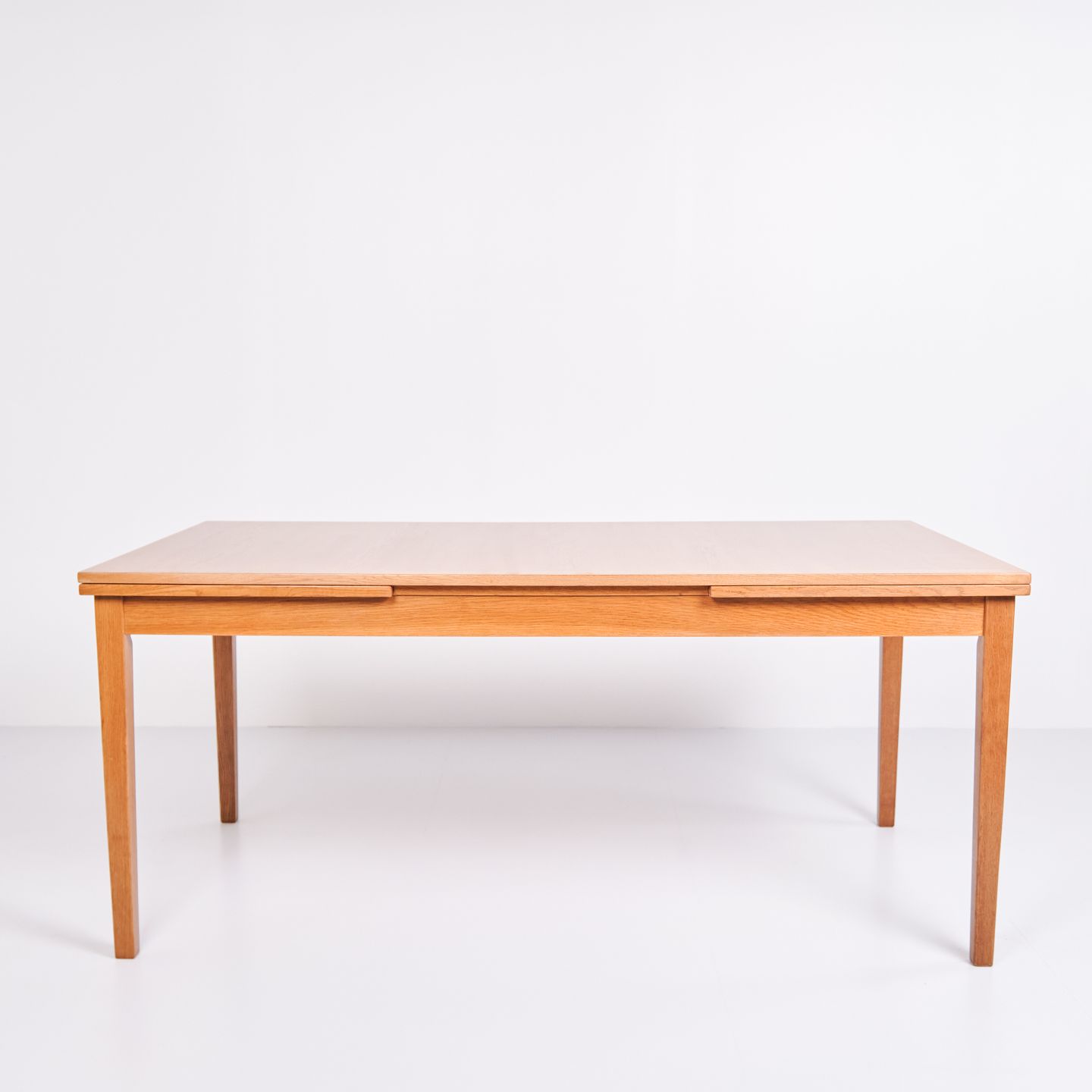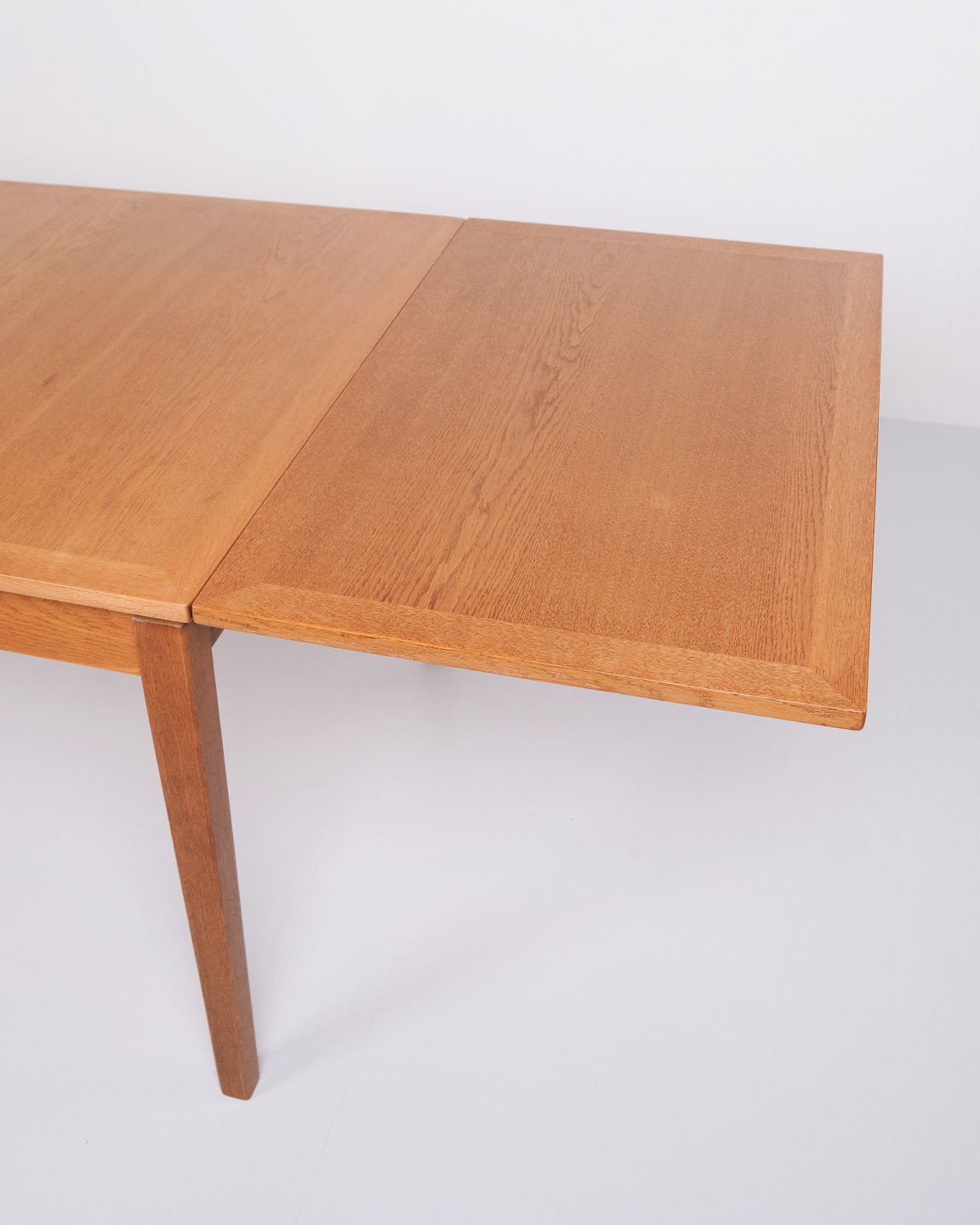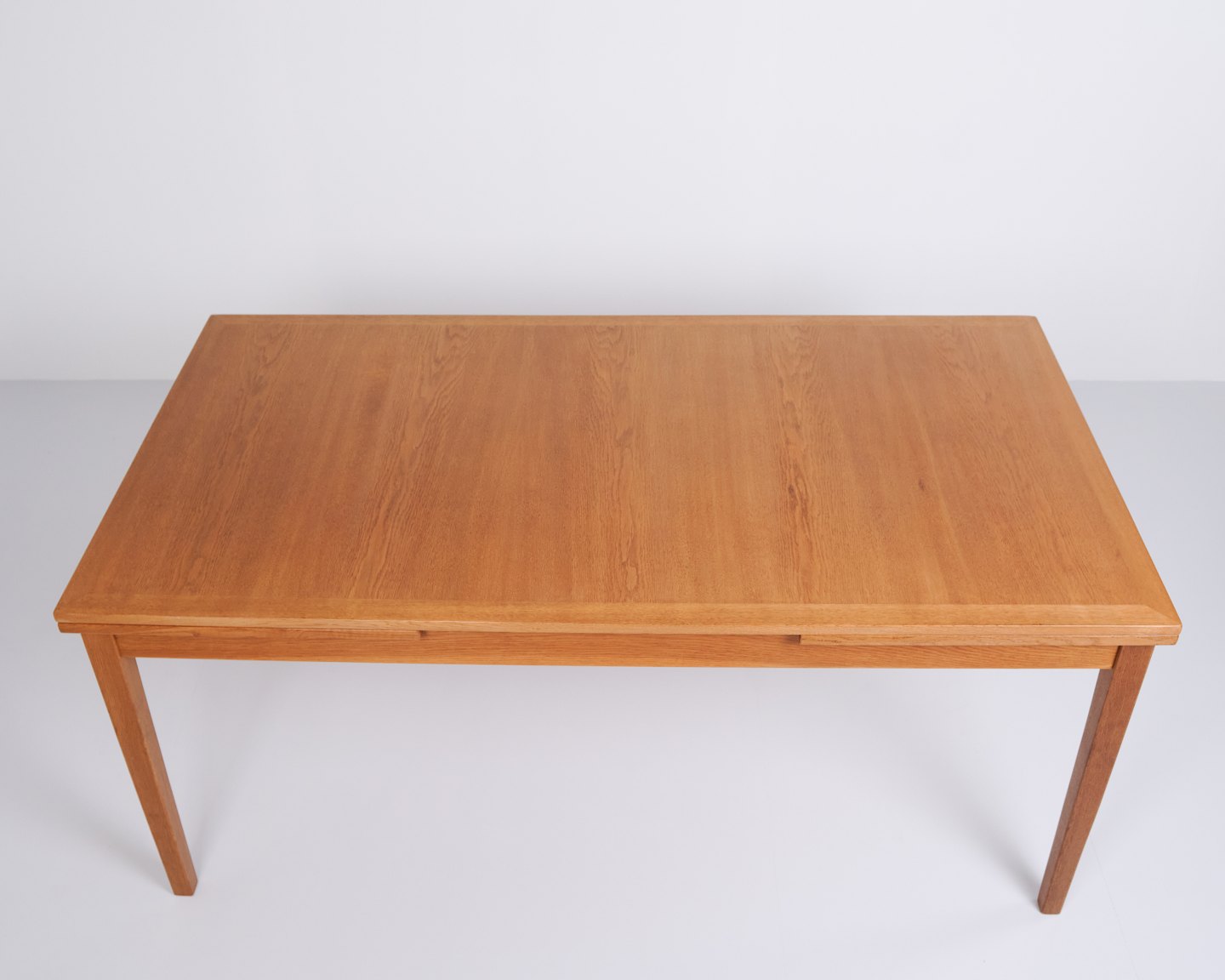 Kai Winding oak dining table from the 1960s. Slagelse Møbelfabrik. Pull-out with two leaves, 55 cm each.