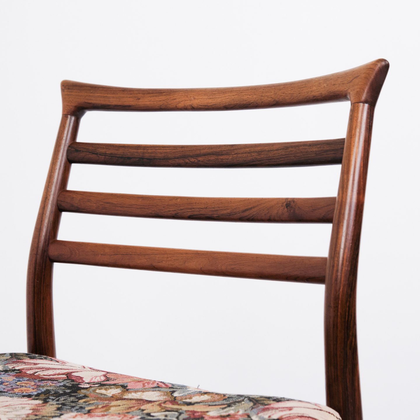 Set of six Erling Torvits dining chairs from the 1960s. Rosewood with floral seat. Sorø Møbelfabrik.