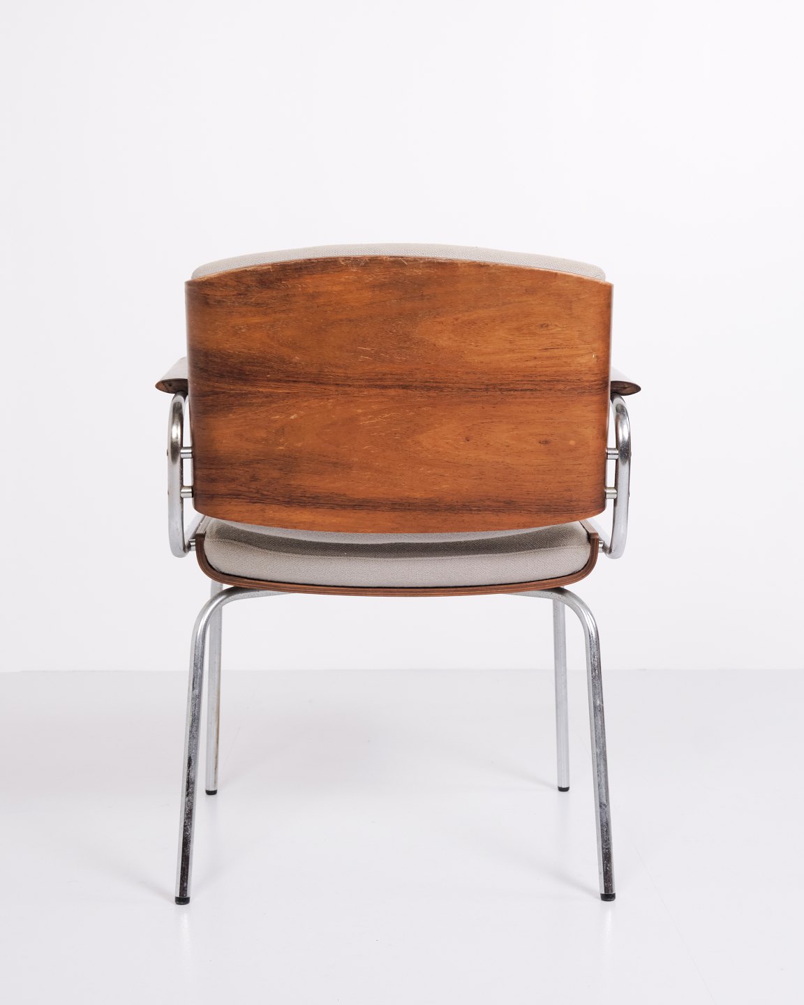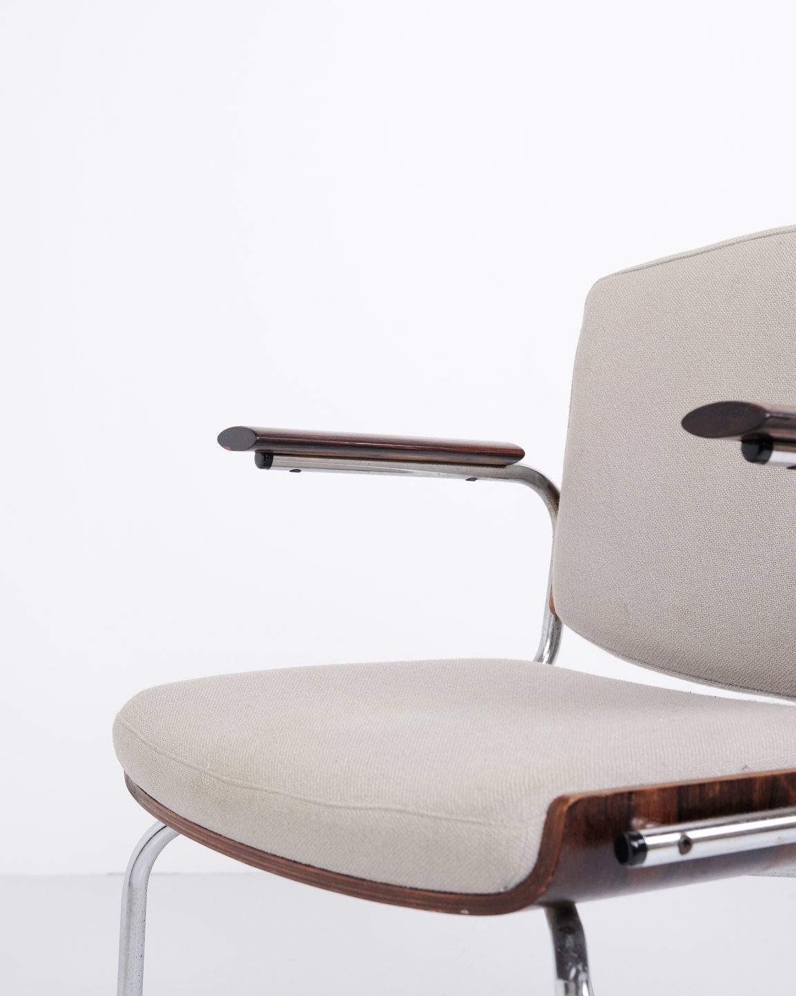 Set of four Duba conference chairs in rosewood and light gray fabric. Danish design from the 1960s.