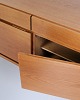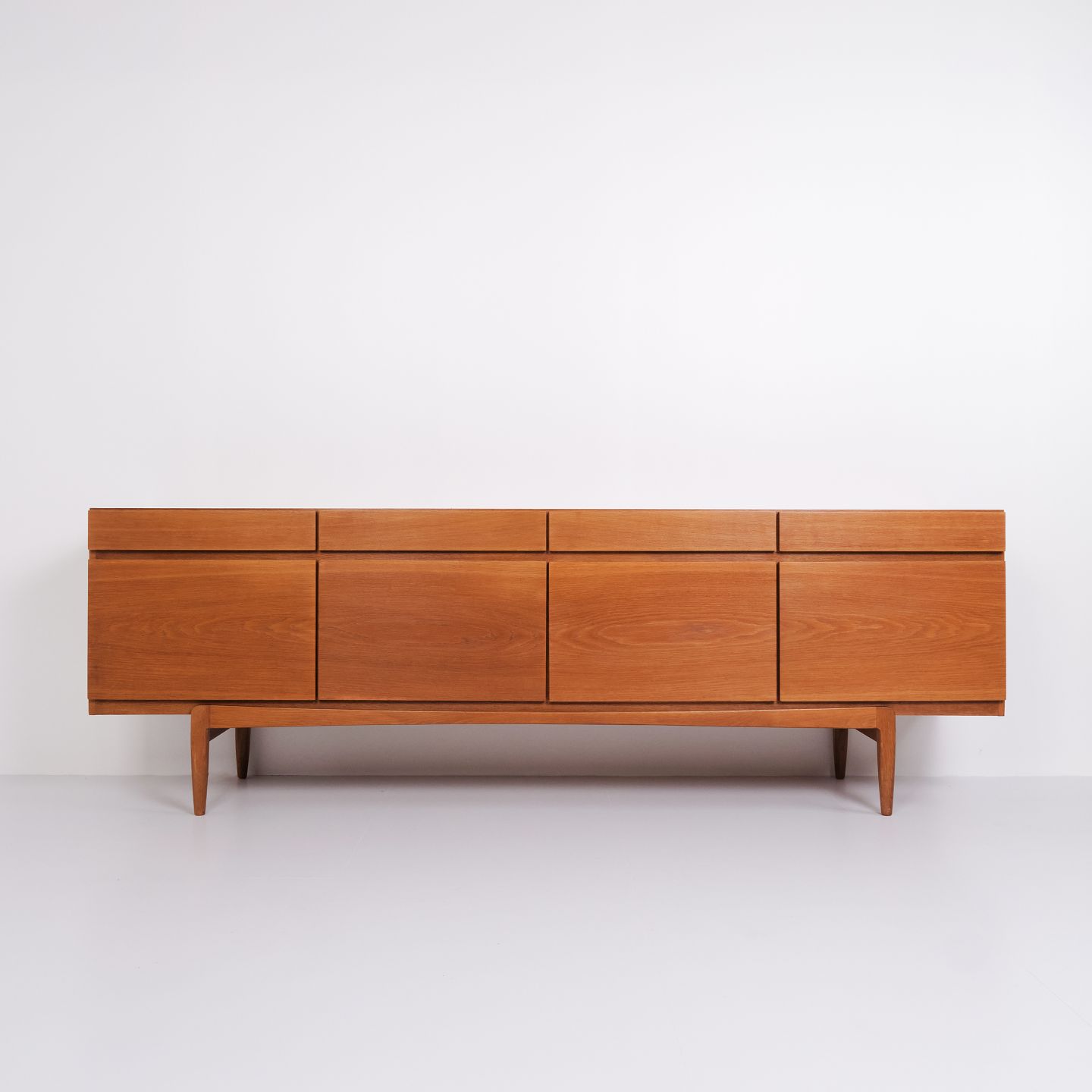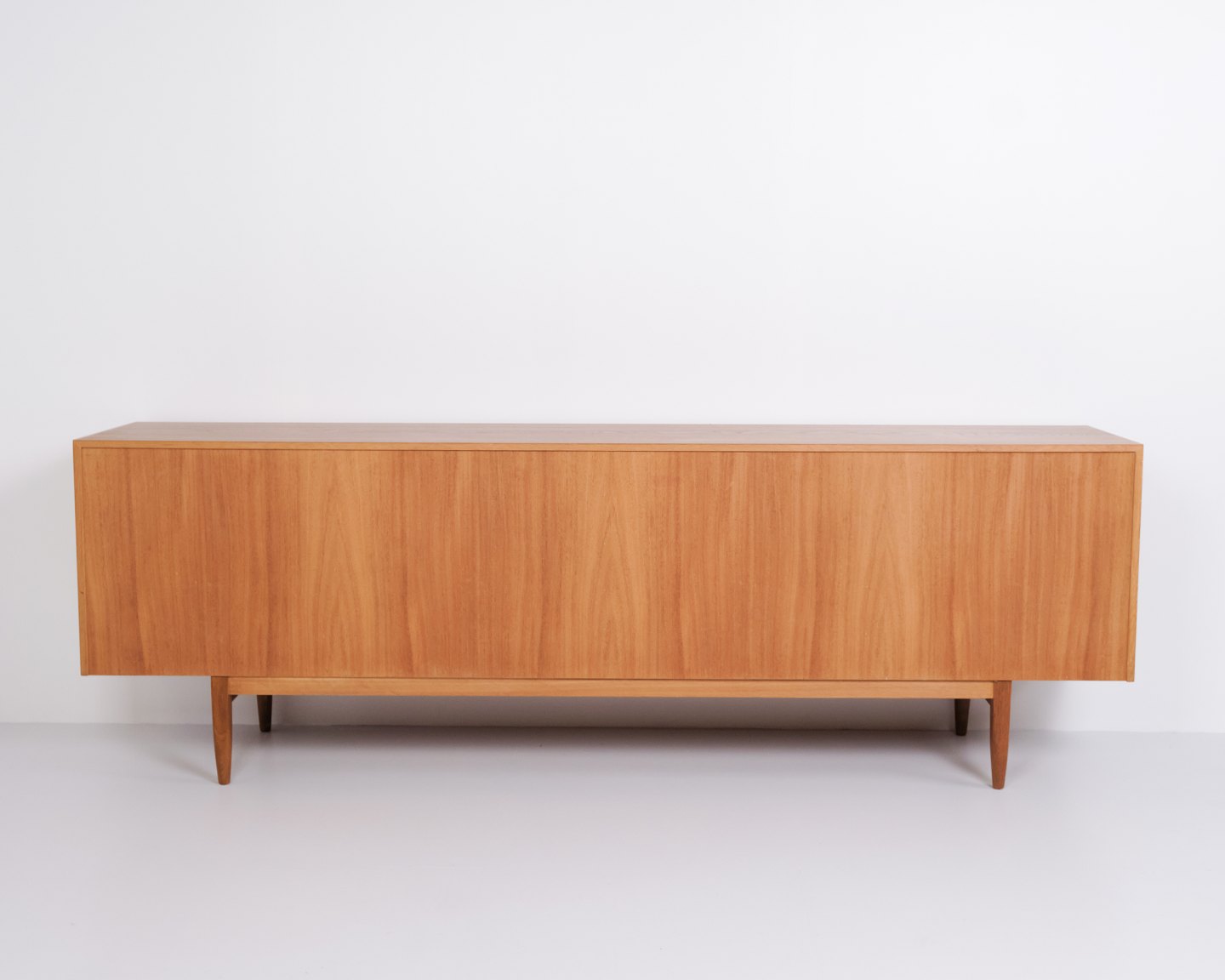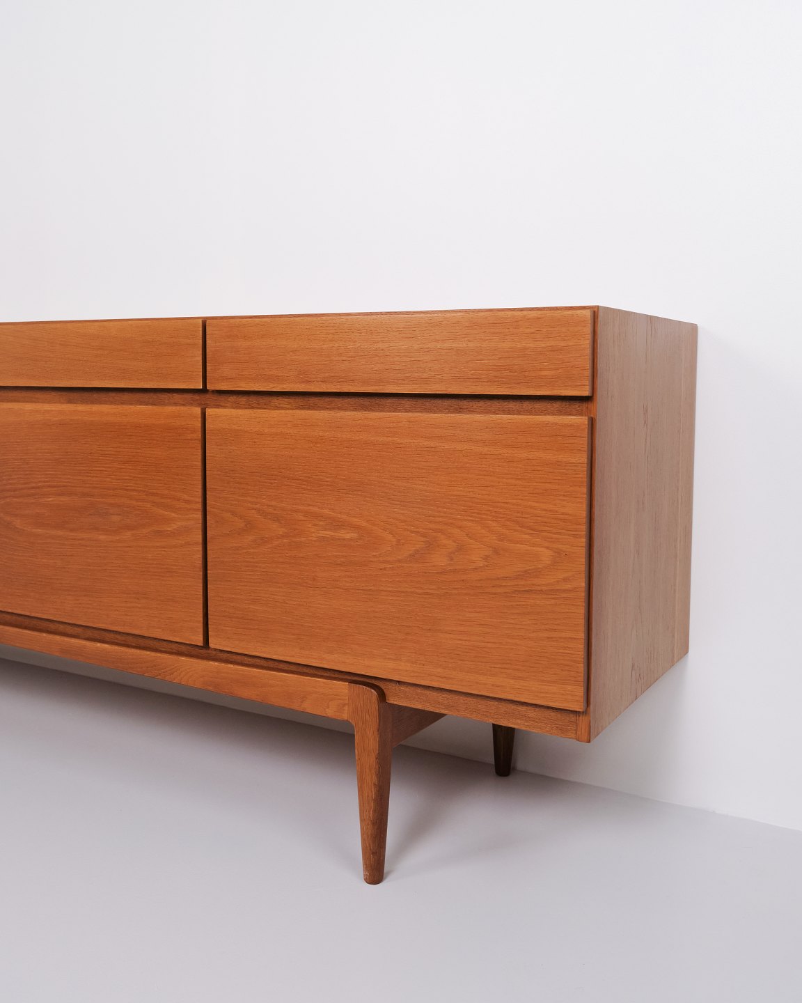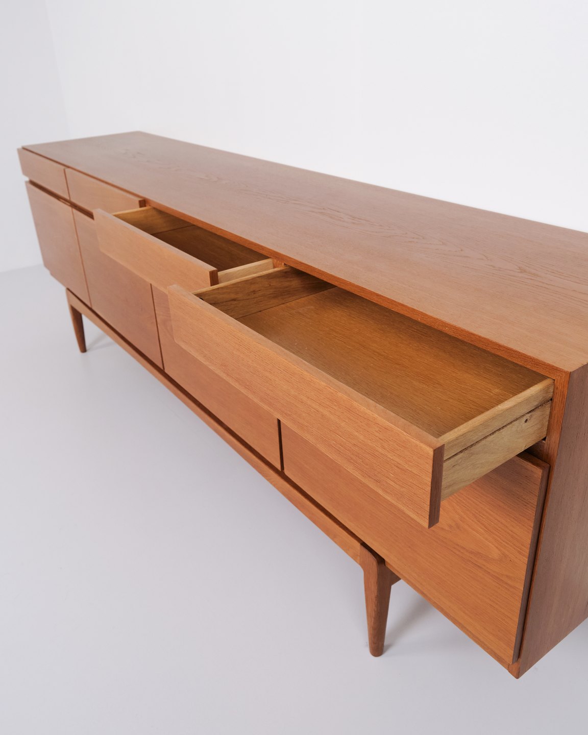 Please contact us for price informationLarge oak sideboard, model FA66, designed by Ib Kofod-Larsen and produced by Faarup Møbelfabrik in the 1960s. The sideboard is designed with four sliding doors and internal shelves and drawers, which provide ample storage space.