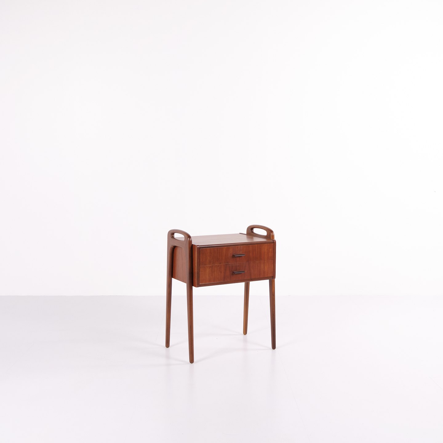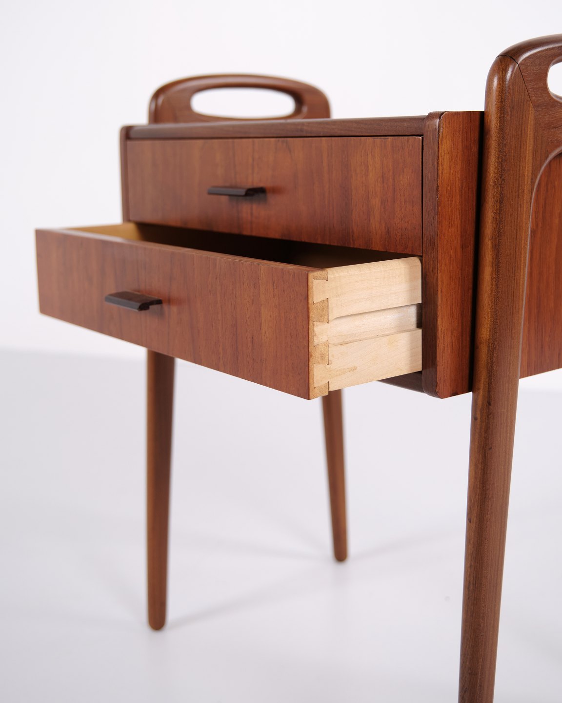 Classic side or bedside table from the 1960s, made of teak with a simple and functional design.